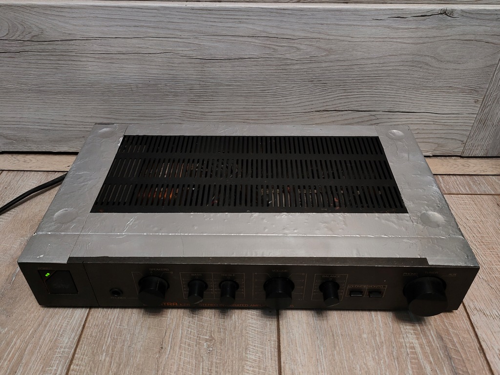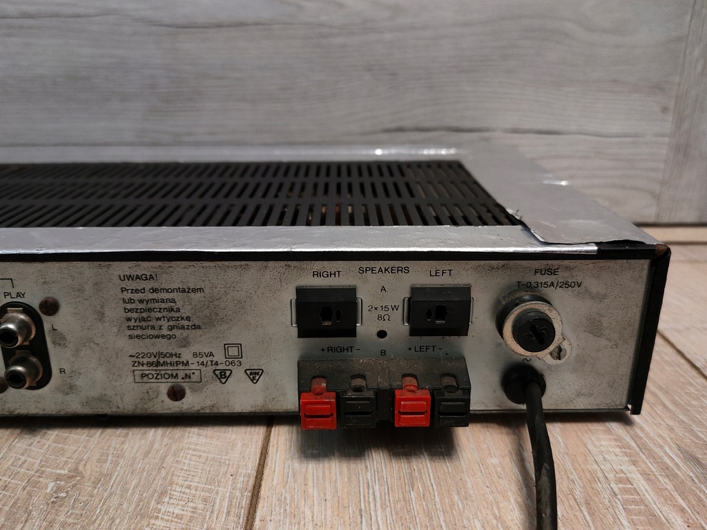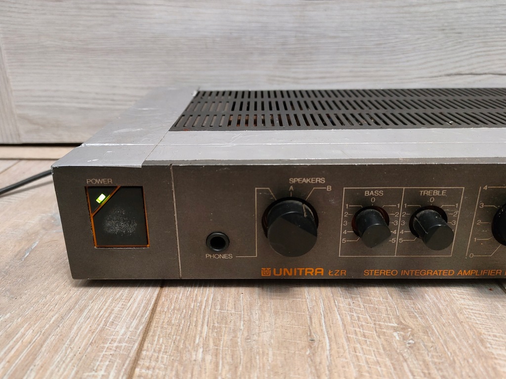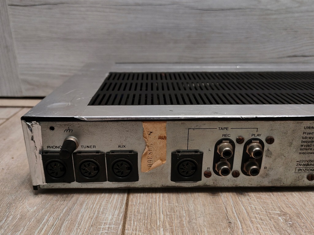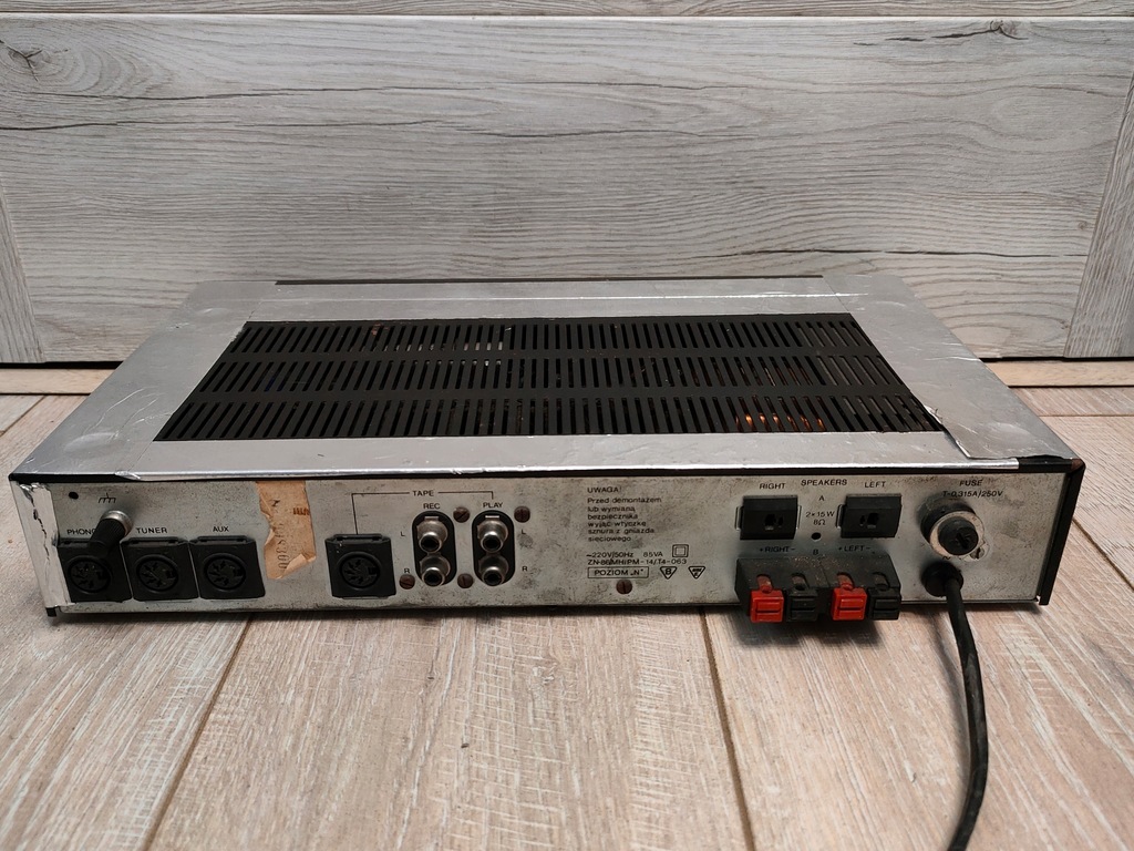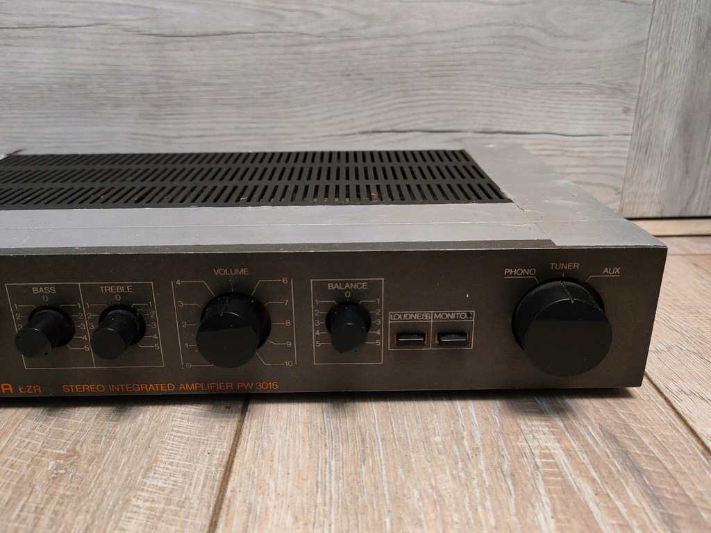 posiadam na sprzedaż wzmacniacz UNITRA ŁZR PW 3015. Stan wizualny przedstawiony na powyższych zdjęciach. Panel przedni zachowany w bardzo ładnym stanie, napisy niepoprzecierane. Potencjometry działają jak należy. Wzmacniacz sprawny, lecz z racji długiego nieużytkowania może wymagać małego serwisu.