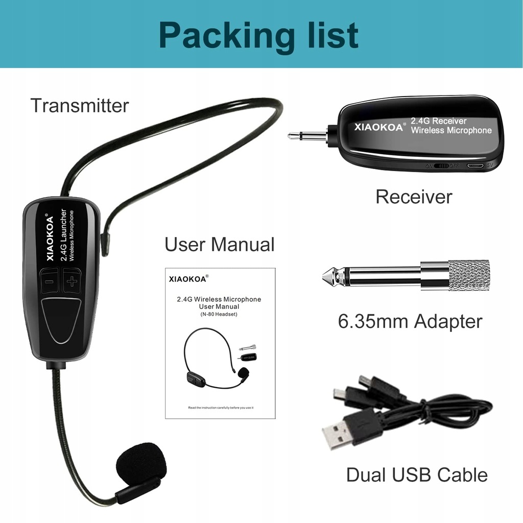 - Mikrofon bezprzewodowy 2,4G z jednym wyzwalaczem i mikrofonem MQ