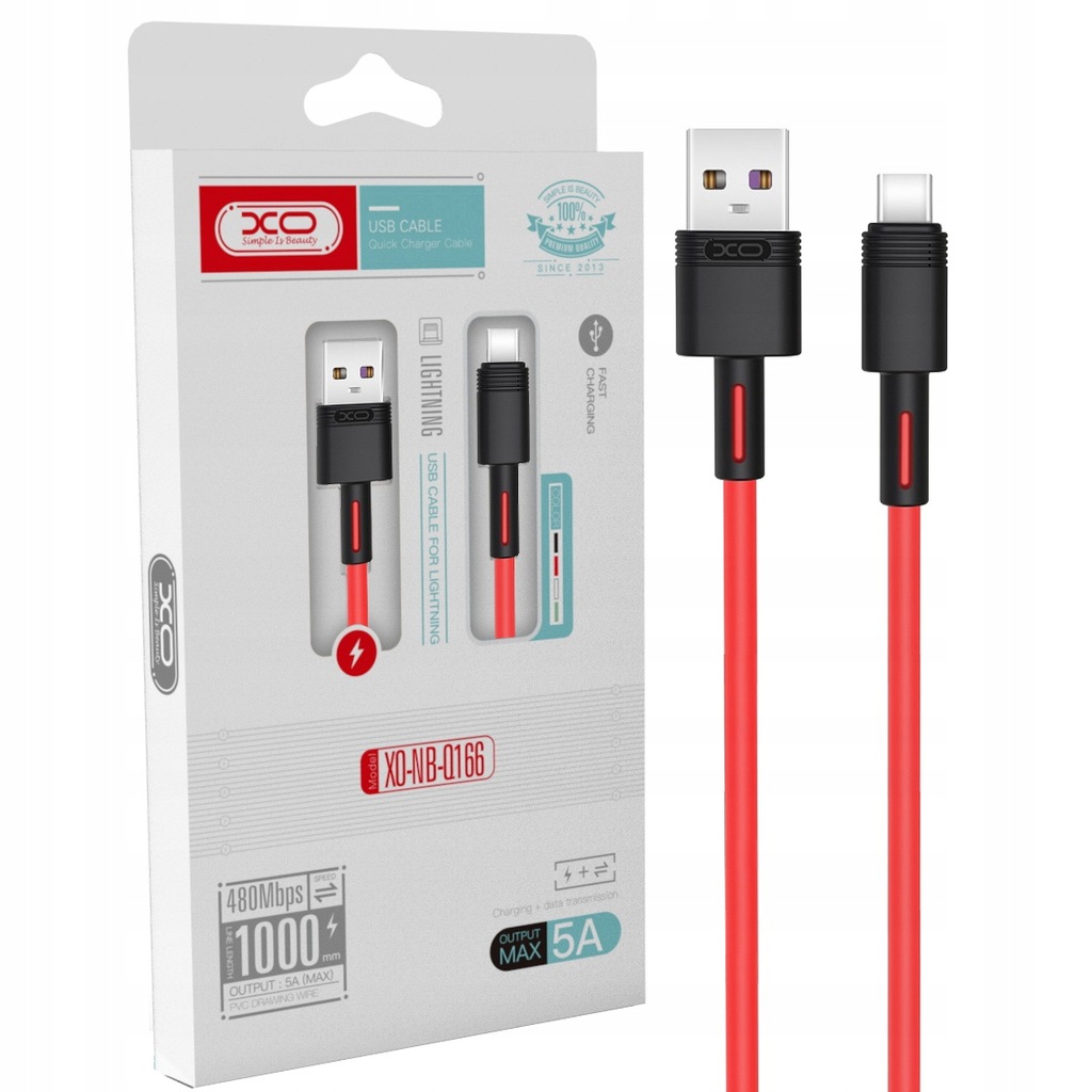 XO kabel NB-Q166 USB - USB-C 1,0 m 5A czerwony
