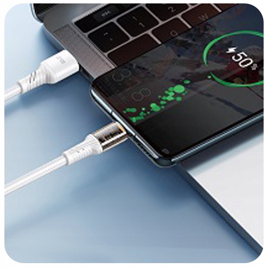 Kabel jest pokryty elastycznym oplotem, który zapobiega uszkodzeniom i zwiększa jego trwałość. Ma on także elegancki, biały kolor, co czyni go doskonałym wyborem do użytku domowego lub w podróży.