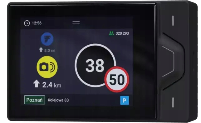 - Funkcje: Alert przekroczenia prędkości, Asystent Autostradowy, Baza fotoradarów w Europie, Bluetooth, Ograniczenia prędkości, Strefa płatnego parkowania, Ulubione miejsca