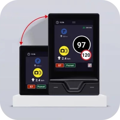 Odświeżony interfejs wyświetlacza został wypełniony kolorami i prezentuje zupełnie nowy design ikon, bez ryzyka rozpraszania Twojej uwagi w trasie.W nowej odsłonie znajdziesz jeszcze więcej informacji – nie tylko poznasz swoją odległość do pierwszego zdarzenia, ale zobaczysz też, w jakiej odległości znajduje się następne. Obsługa nowego wyświetlacza w Yanosik RS to czysta przyjemność.Dotykaj, przesuwaj i obracaj. Ekran w Yanosik RS pracuje w dwóch trybach – poziomym i pionowym. Dostosuj układ do swoich potrzeb i zachowaj wysoki komfort użytkowania w trasie.