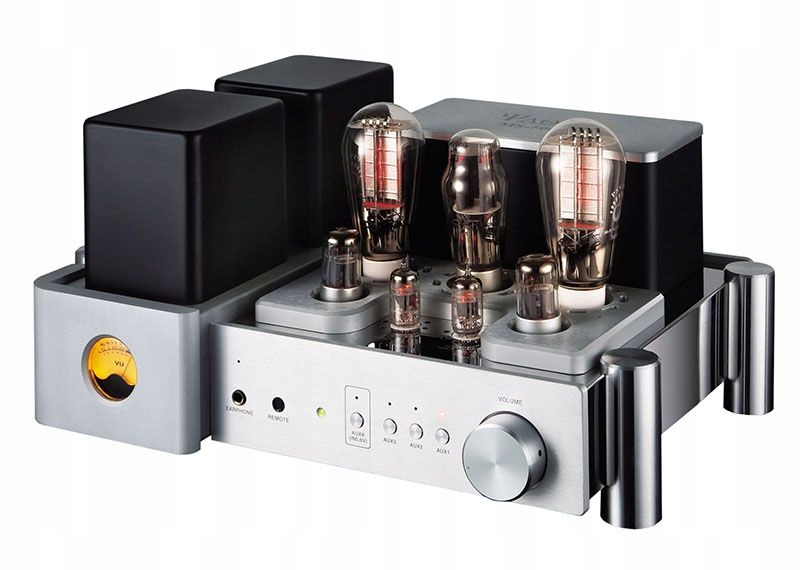 Specyfikacja: Moc wyjściowa: 2x 8.5W (4Ω lub 8Ω) Pasmo przenoszenia 5Hz - 40KHz ±2 dB THD 1.4% at 1 kHz S/N >84 dB, Class A Czułość wejścia 3 x Aux: 0.2V, 1 x Aux: 0,6V Dopuszczalna impedancja głośników 4Ω, 8Ω Zalecana impedancja słuchawek 32Ω Zastosowane typy lamp 300B x 2, 6N8P x 2, 12AU7 x 2, 5Z3P x 1 Zasilanie 220-240 V / 50Hz Wymiary 590×470×380 mm, W x D x H Waga 29 kg