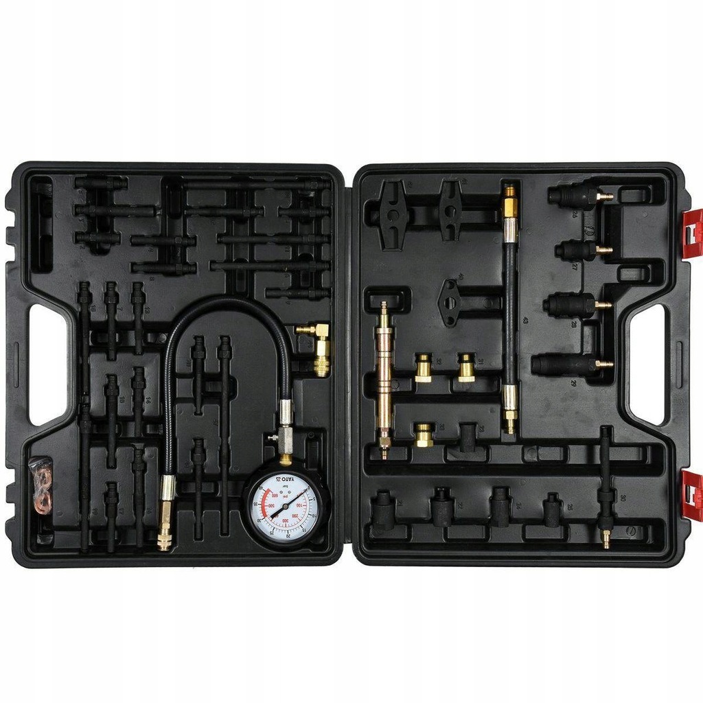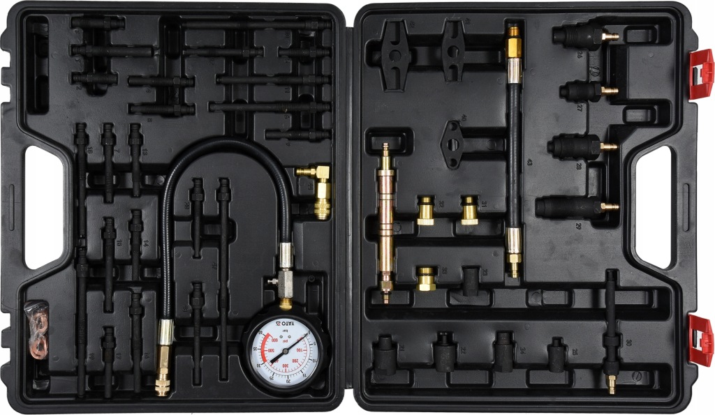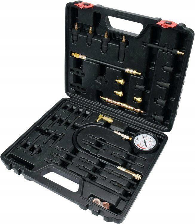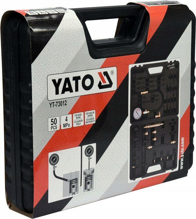 Uniwersalny zestaw do pomiaru ciśnienia kompresji zarówno w silnikach benzynowych, jak i diesla. Pomiaru można dokonać przez świece żarowe lub przez wtryskiwacz.Przeznaczony do samochodów osobowych, dostawczych, busów, ciągników i innych pojazdów rolniczych, a nawet łodzi motorowych.