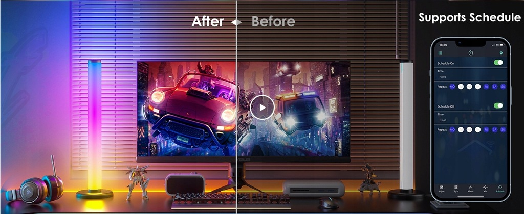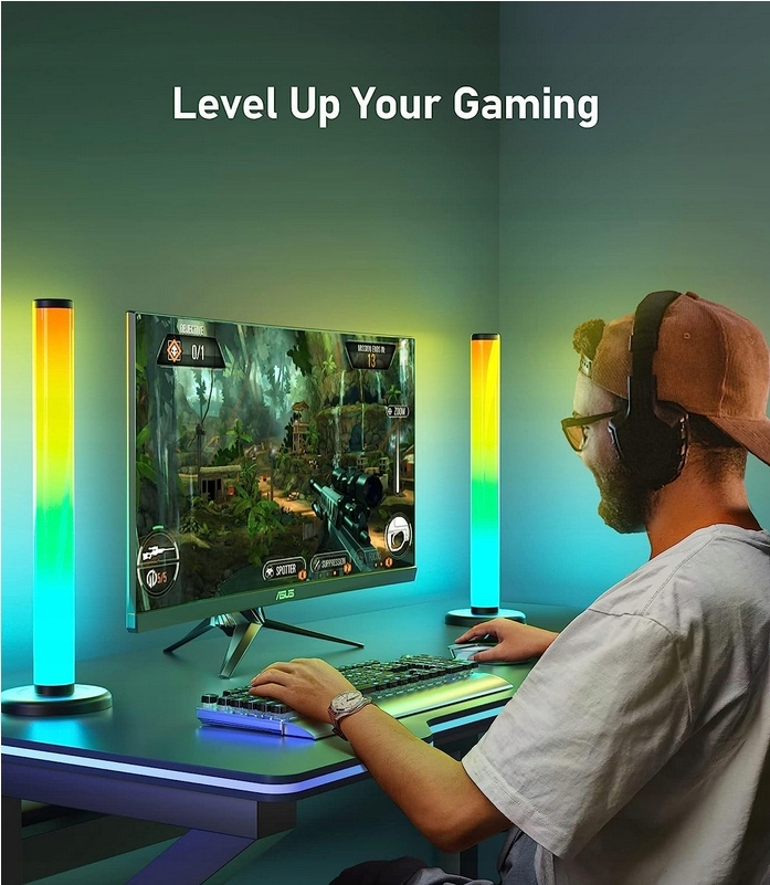 ✔️ZWIĘKSZ SWOJĄ GRĘ. Przyjmuje innowacyjny układ RGBW IC do wyświetlania tęczowych efektów świetlnych utworzonych z 16 milionów kolorów. Dzięki wbudowanemu mikrofonowi pasek świetlny aktywowany dźwiękiem ładnie synchronizuje się z muzyką lub dźwiękami otoczenia dochodzącymi z telewizora/komputera. Przenieś swoją grę na wyższy poziom.