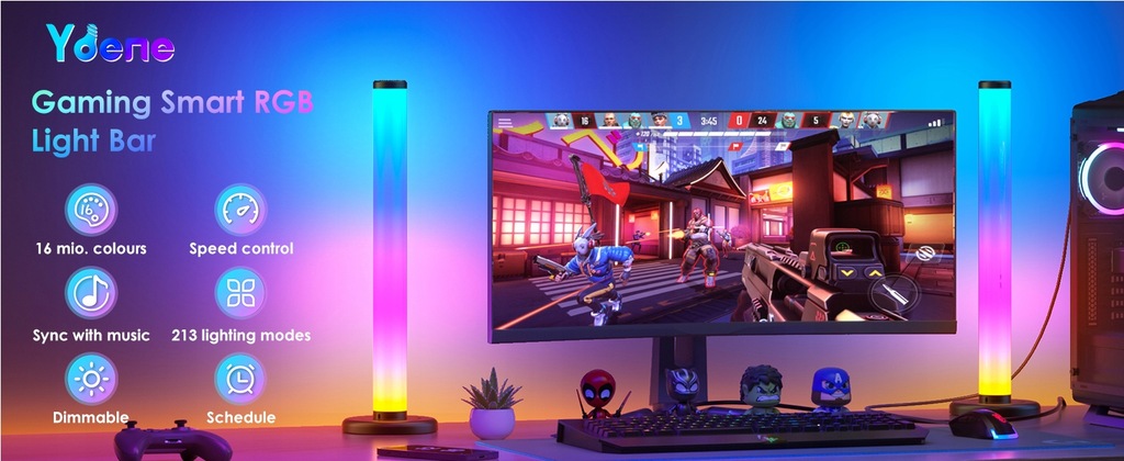 ⭐️Inteligentna listwa świetlna Ydene LED ⭐️RGB 360° z 16 mil. Kolor, ⭐️213 efektów Światła do gier ⭐️Synchronizacja z muzyką, telewizorem ⭐️Oświetlenie otoczenia Aktywowana dźwiękiem