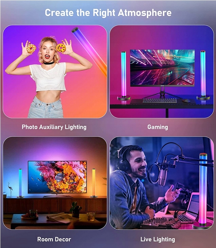 ✔️KOLORUJ SWOJĄ MUZYKĘ W SEKUNDY. kontrolując pasek świetlny led za pomocą aplikacji, możesz wybrać wyświetlanie jednolitej tablicy kolorów, efektu tęczy lub dowolnej kombinacji kolorów. Dodatkowo możesz sterować oświetleniem za pomocą pilotów i przewodowych sterowników. Łatwo znajdziesz stan, który lubisz w różnych warunkach.