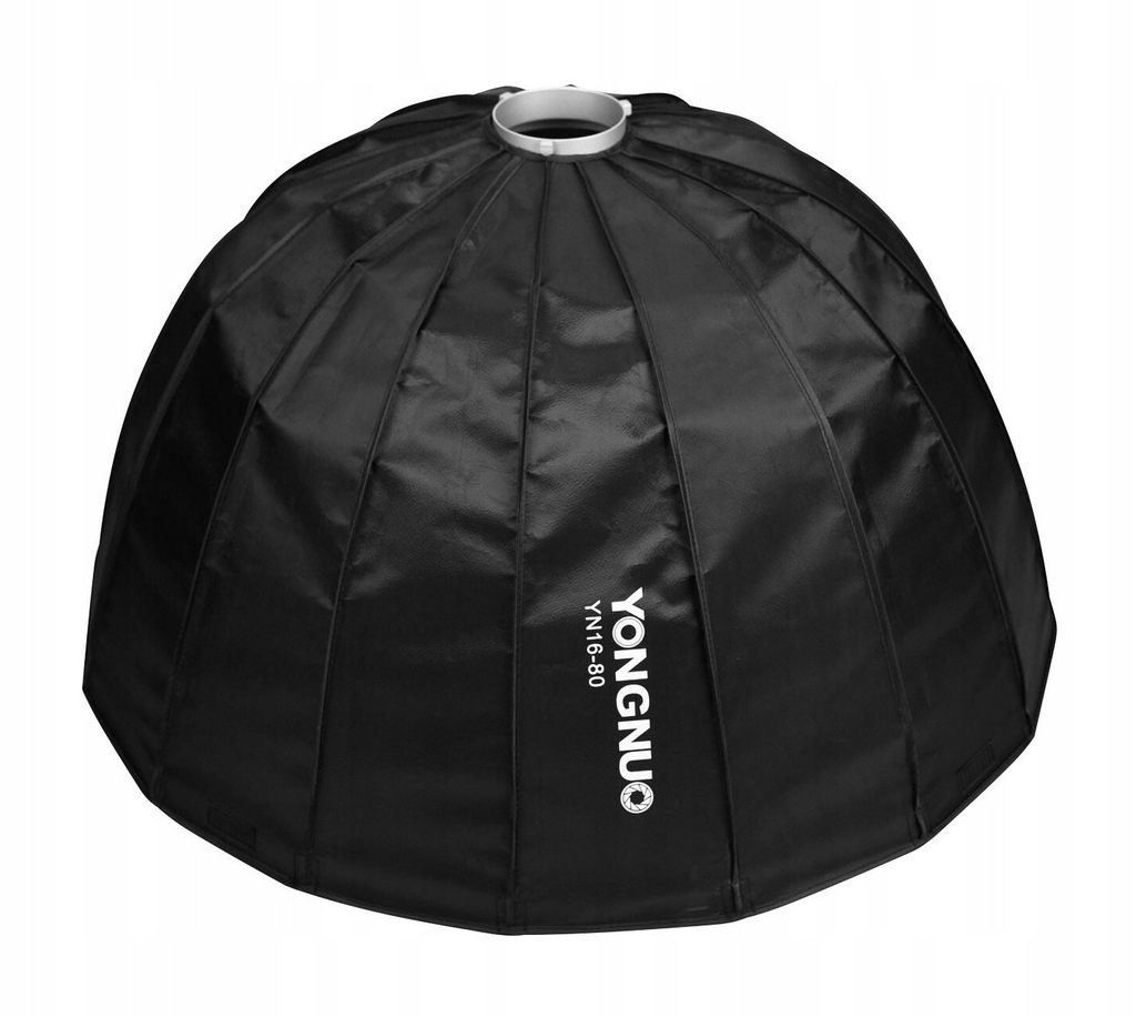 Yongnuo YN16-80 to wysokiej jakości softbox heksagonalny o średnicy 80 cm. Softbox posiada popularne mocowanie typu Bowens, pasujące do większości dostępnych na rynku lamp studyjnych. W zestawie wraz z softboxem znajdują się również dwie warstwy tkaniny dyfuzyjnej oraz praktyczny pokrowiec transportowy.