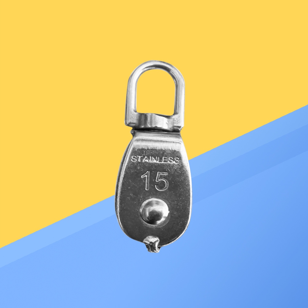 ✅1 x M15 15mm Stainless Steel Single Wheel Swivel Pulley Block Loading 35KG (Silver)