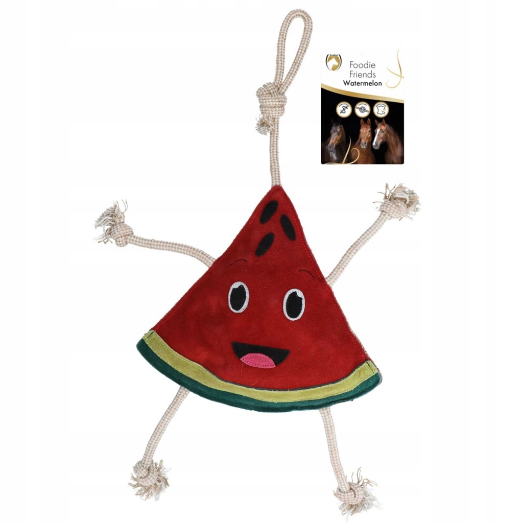 Zabawka dla KONIA do boksu skórzana ze sznurem ARBUZ trzaskająca wzmacniana