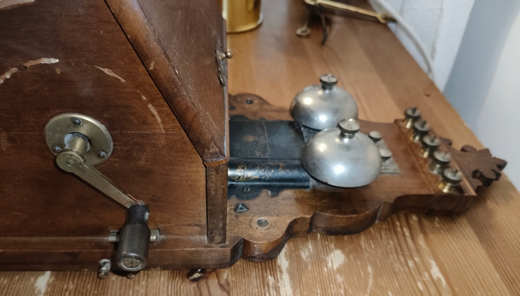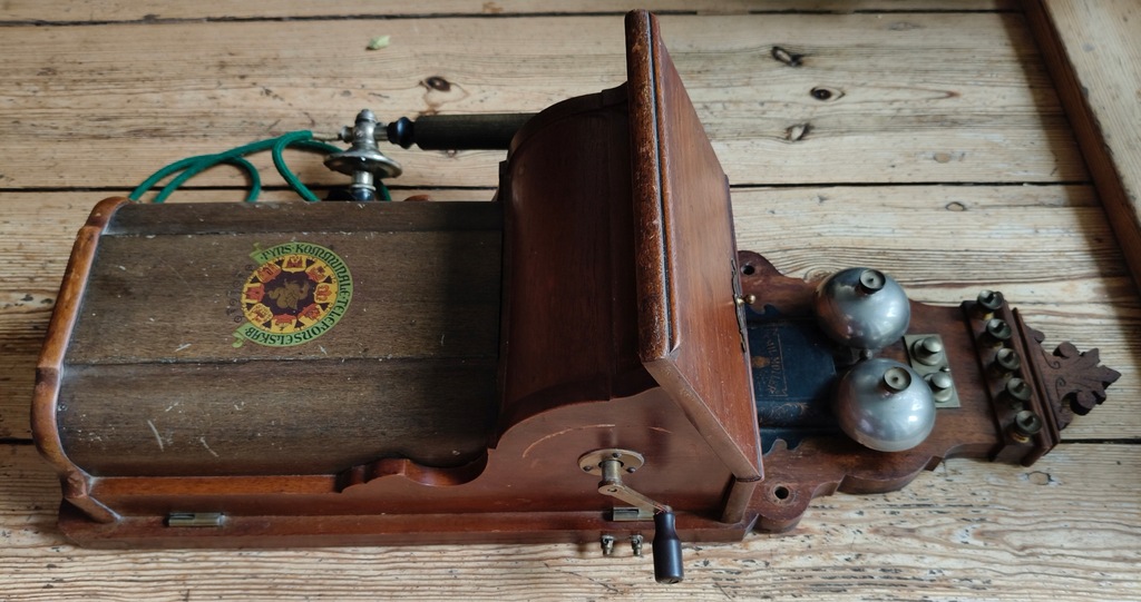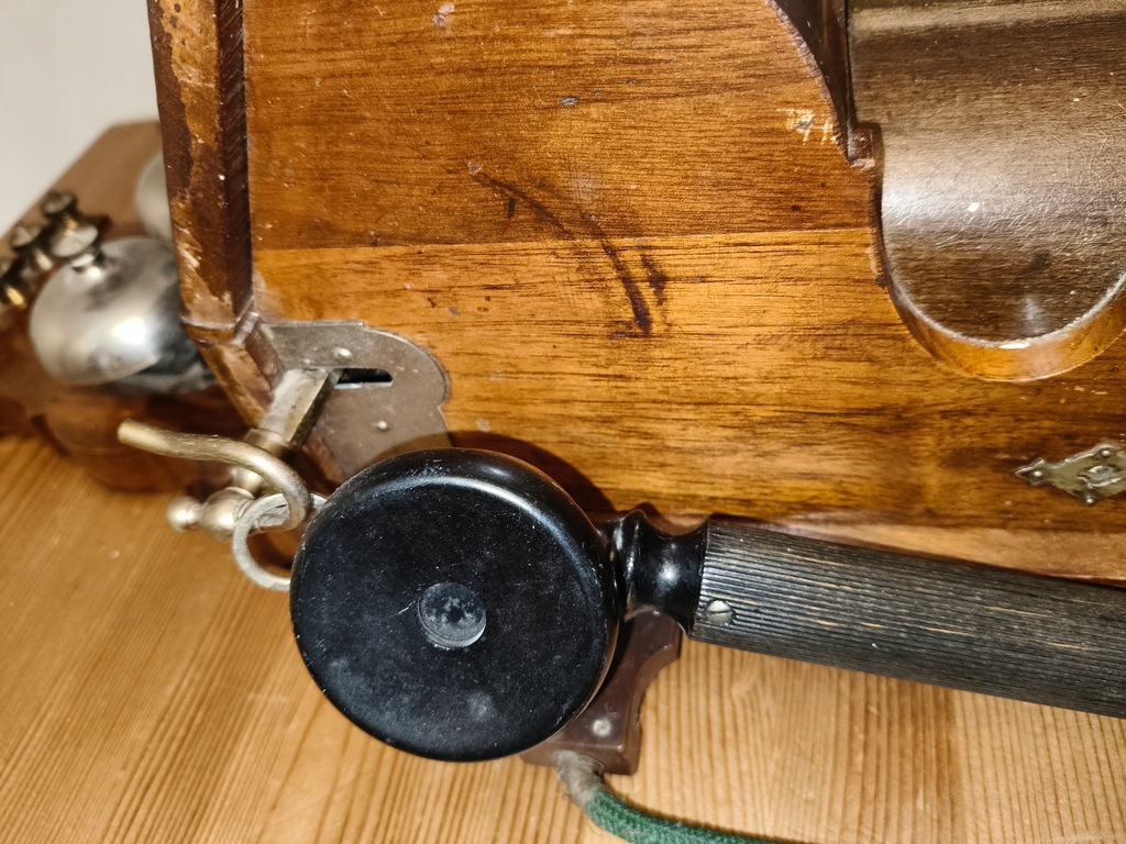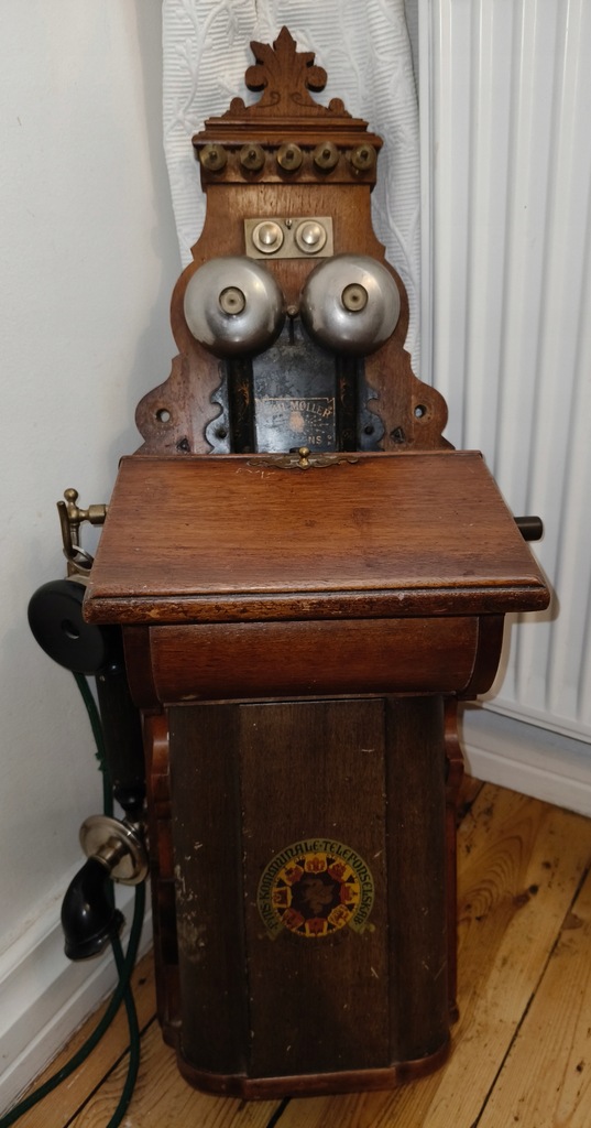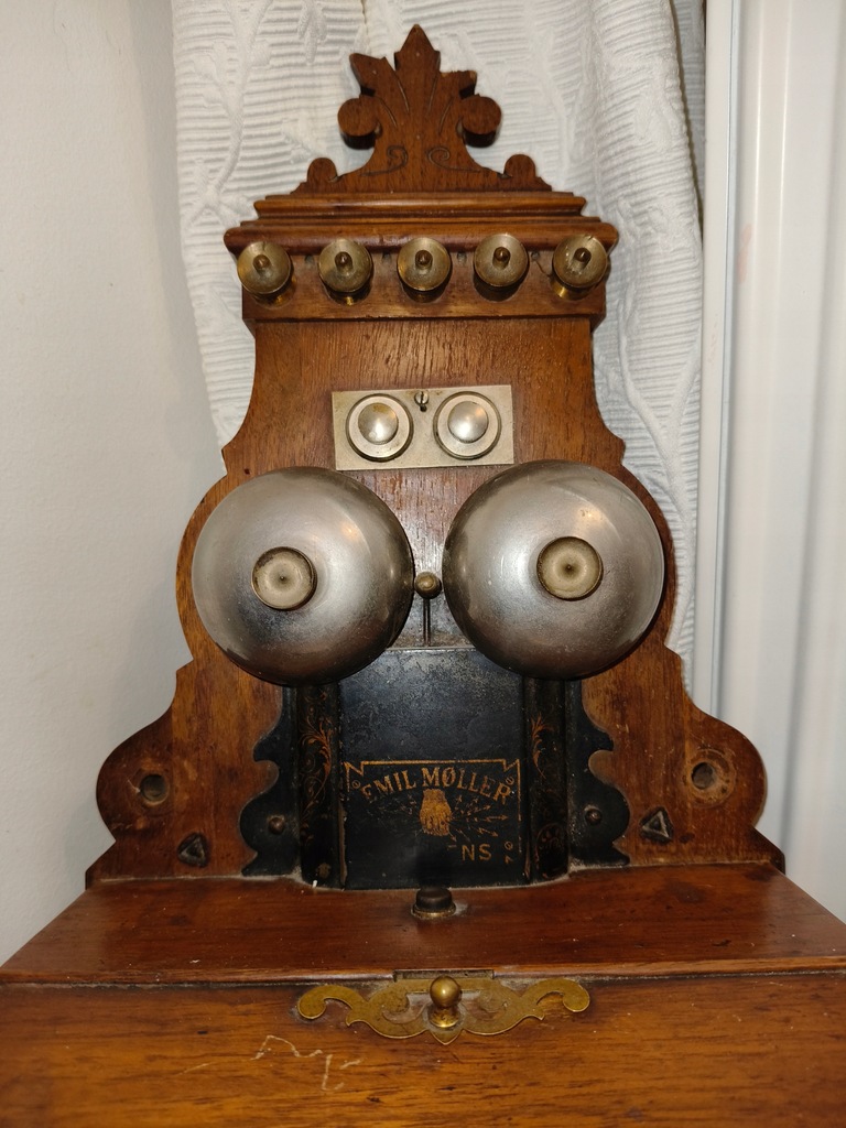 Na sprzedaż unikatowy, oryginalny zabytkowy telefon ścienny wyprodukowany przez duńską firmę Emil Moller – jeden z pionierskich modeli telefonicznych z początku XX wieku (ok. 1900–1920).