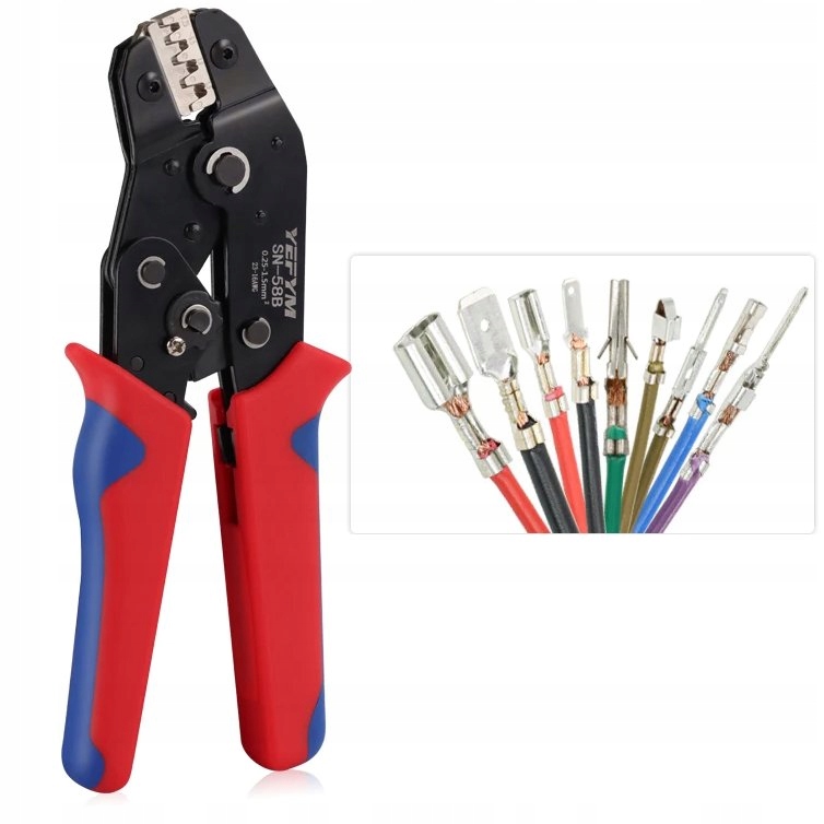 ZACISKARKA KONEKTORÓW tulejek praska zaciskacz 7 różnych matryc z Auto-Lock + etui
