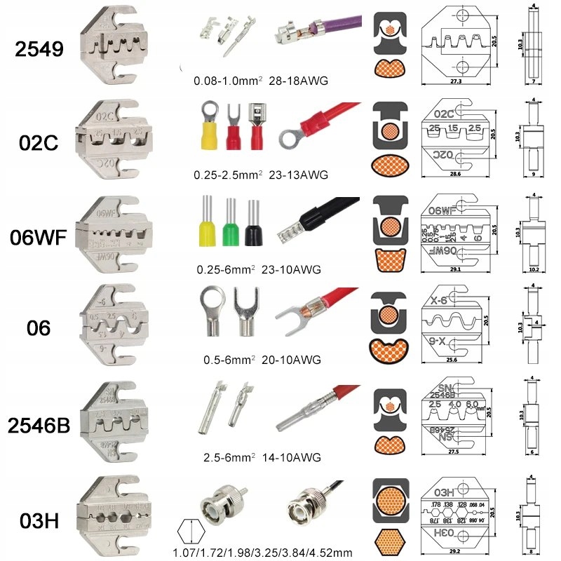 W zestawie jest także bardzo poszukiwana matryca do konektorów nieizolowanych samochodowych różnych mini pinów D-SUB, V.35, MOLEX, JST, TYCO, DuPont