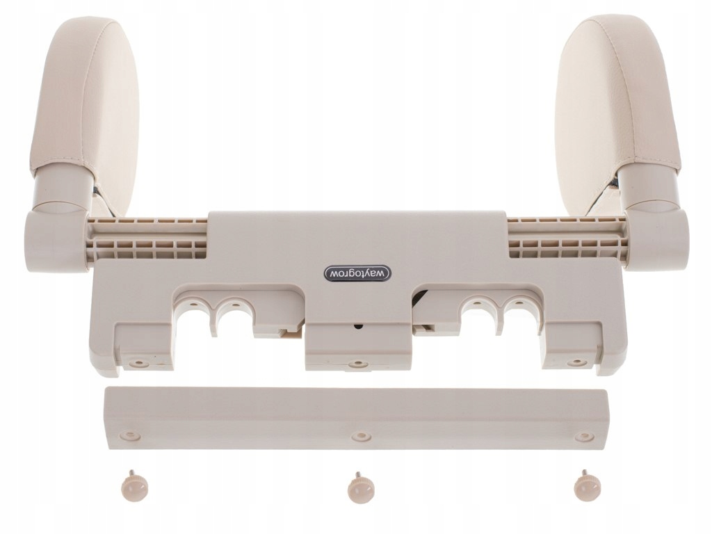 się na boki. Przyłóż zagłówek do prętów i przykręć tylną osłonę.