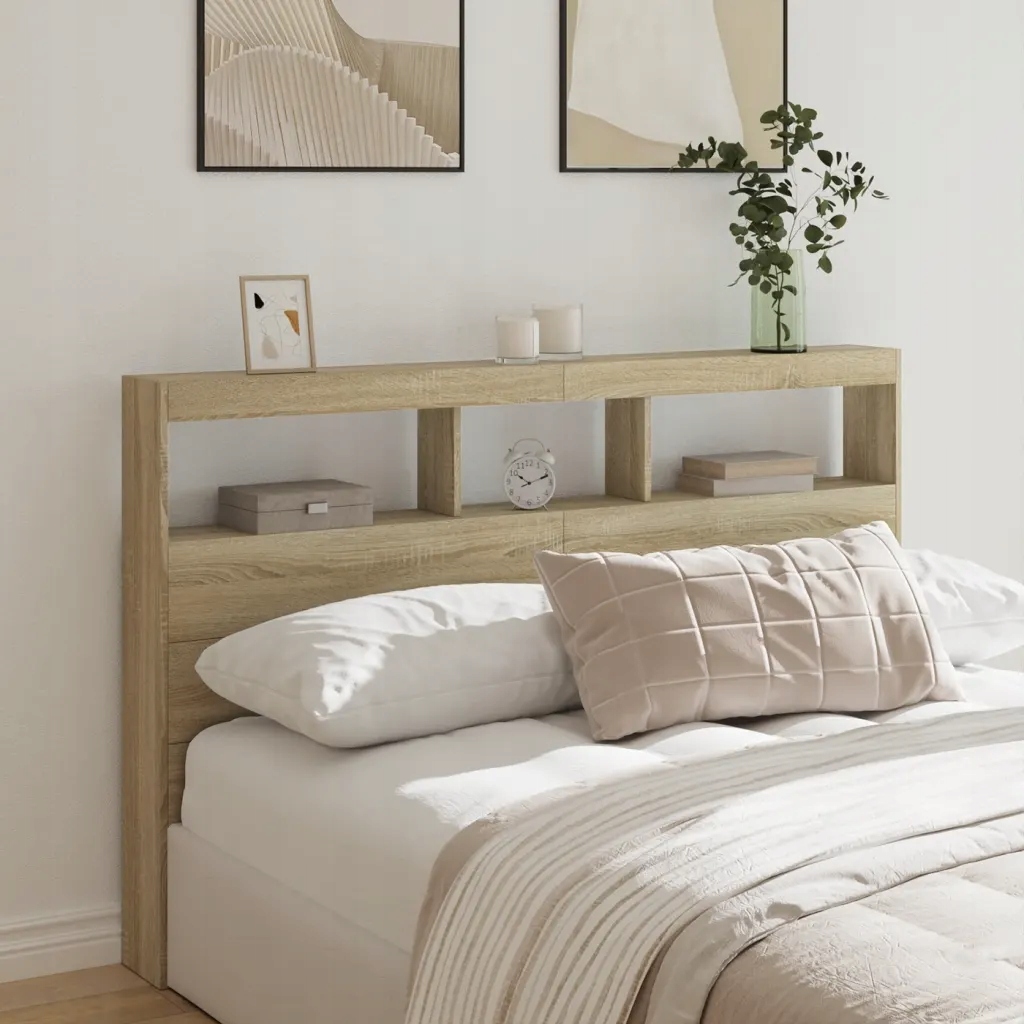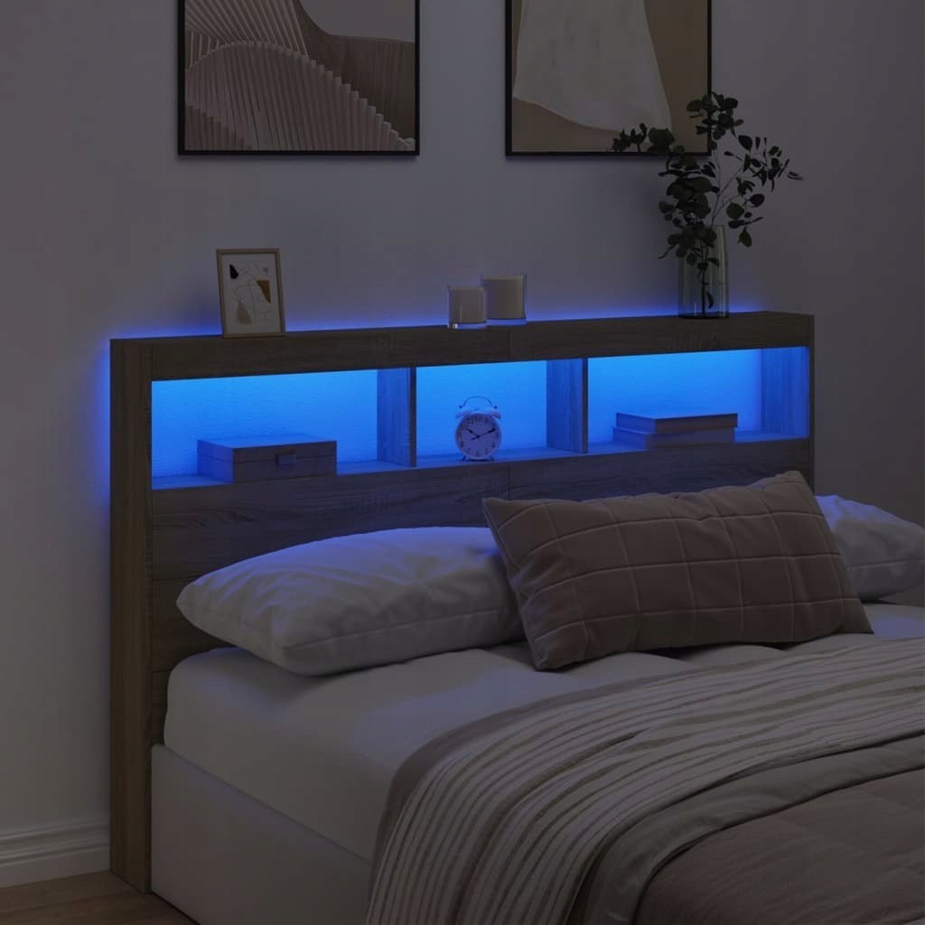 Zagłówek z półkami i oświetleniem LED, dąb sonoma, 160x17x102cm
