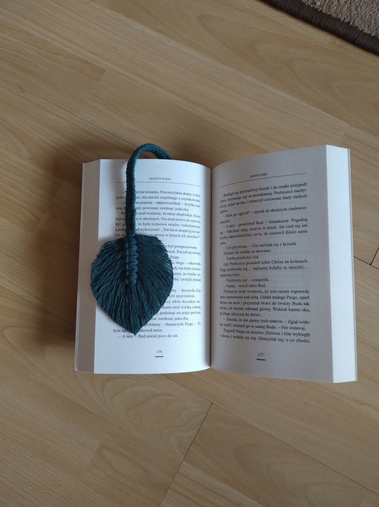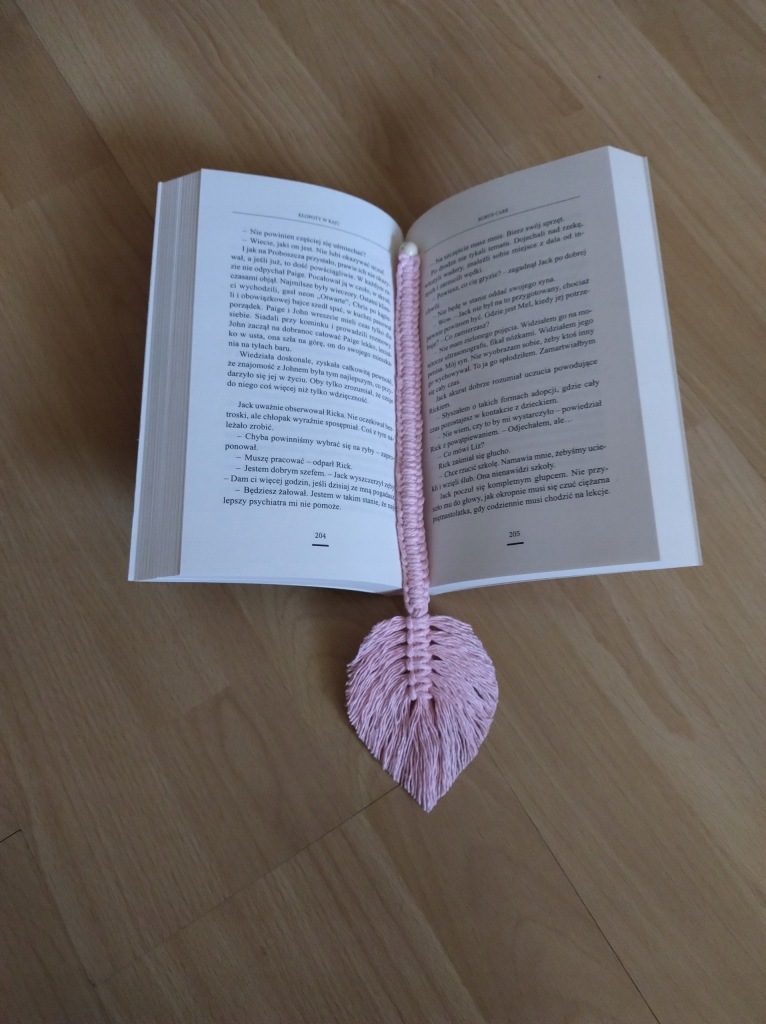Ręcznie pleciona zakładka do książki.