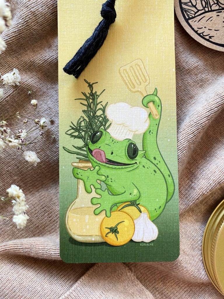 - front zakładki - ilustracja z gekonem, tył zakładki - ślady gekona