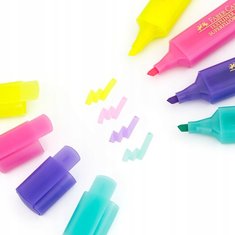 Zakreślacze gwarantują najlepsze efekty podczas pracy na papierze. Szeroka gama kolorów super-fluorescencyjnych zapewnia dużą różnorodność. Produkt ma standardowy kształt zakreślacza, nie zajmuje wiele miejsca i jest wygodny w użyciu, a specjalna końcówka pozwala na znakowanie cienko lub szeroko.