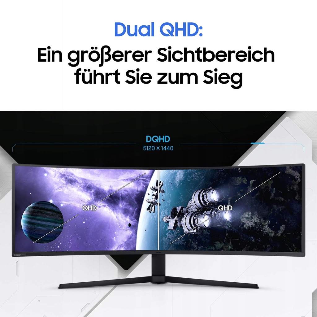 Niezrównane wrażenia wizualne. Rewolucyjna technologia Quantum Matrix z diodami Quantum Mini LED zapewnia kontrolowaną jasność i doskonały kontrast w celu uzyskania wyrafinowanej rozdzielczości. Lokalne strefy przyciemnienia zwiększono do 2048 i połączono z najwyższymi 12-bitowymi poziomami czerni, aby zapewnić niezrównaną jakość obrazu. Odkryj każdy szczegół w całej okazałości. Od ponurych cieni po sceny spalone słońcem, maksymalna jasność 2000 nitów i współczynnik kontrastu 1 000 000:1 umożliwiają lepszą reprodukcję i głębię kolorów. 49-calowa rozdzielczość DQHD umożliwia wyświetlanie obrazu o szerokości odpowiadającej dwóm monitorom QHD obok siebie i wyświetlanie niezwykle szczegółowych i wyraźnych obrazów. Doświadcz wszechstronnego obszaru oglądania z maksymalną przestrzenią, aby uchwycić całą akcję. Zakrzywiony ekran 1000R 49-calowy, bardzo panoramiczny wyświetlacz modelu 1000R wciąga Cię prosto w scenę. Zintegrowane oświetlenie Oświetlenie podstawowe dodaje osobistego charakteru Twojej konfiguracji dzięki wielu trybom kolorów. Częstotliwość odświeżania Częstotliwość odświeżania 240 Hz zapewnia zapierającą dech w piersiach rozgrywkę. Opóźnienie wejściowe Doświadcz niespotykanej dokładności reakcji przy opóźnieniu wejściowym wynoszącym 2 ms. Odyssey Neo G9 Odyssey G9 CRG9 CHG90 Odyssey G7 Odyssey G7A Odyssey G5 (UWQHD) Zabawa i praca w jednym: dzięki inteligentnemu monitorowi możesz cieszyć się treściami rozrywkowymi na dużym monitorze i pracować mądrzej dzięki dużej powierzchni wyświetlania i wielu funkcjom. Zakrzywione monitory Samsung zaprojektowano tak, aby dopasowywały się do naturalnej krzywizny ludzkiego oka, zapewniając oczom większy komfort. Dzięki UHD możesz zanurzyć się w czterokrotnie większej liczbie pikseli niż Full HD i cieszyć się ostrym obrazem na dużym ekranie. Przewiń mniej i zobacz całą zawartość ostrą jak brzytwa. Odwiedź sklep Odwiedź sklep Odwiedź sklep Odwiedź sklep