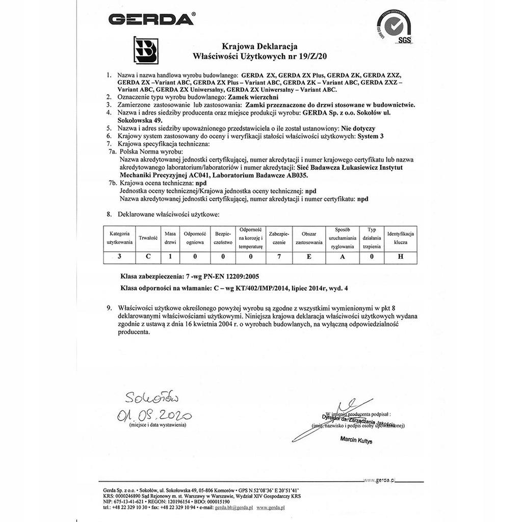 - Możliwość budowy Systemu Klucza Generalnego GERDA (opcjonalnie za dopłatą)