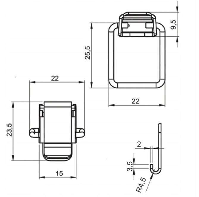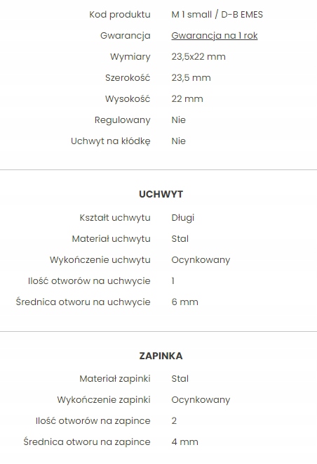 Zatrzask kolankowy 23,5x22mm długi uchwyt zapinka.
