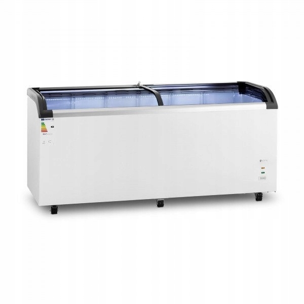 Zamrażarka do lodów marki Royal Catering idealnie nadaje się do przechowywania lodów, jak i same kostki lodu czy orzeźwiające desery w sezonie letnim. Urządzenie sprawdzi się w handlu, usługach cateringowych, barach i kuchniach hotelowych. Zamrażarka ma pojemność 545 l, oferując bardzo dużo miejsca do przechowywania mrożonek, a szklane drzwi i energooszczędne oświetlenie LED pozwala w każdej chwili zobaczyć zawartość, nie otwierając jej. Urządzenie działa za pomocą czynnika chłodzącego R290, który ma doskonałe właściwości termodynamiczne i energooszczędne. Sprężarka o mocy 252 W zapewnia szybkie osiągnięcie docelowej temperatury w zakresie od –30 do 5 °C, a termostat kontroluje stałą wartość chłodzenia. Zamrażarka wyposażona w przesuwne drzwi i sześć praktycznych koszy dzielących oferują możliwość bezpiecznego i łatwo dostępnego przechowywania mniejszych produktów. Koszyki można dowolnie z łatwością wkładać lub wyjmować, są również szczególnie łatwe w czyszczeniu. Wysoką stabilność i trwałość urządzenia, gwarantuje obudowa wykonana ze stali oraz wewnętrzna warstwa z tłoczonego aluminium. Mobilność zamrażarki ułatwia sześć kółek, które można zablokować hamulcami.