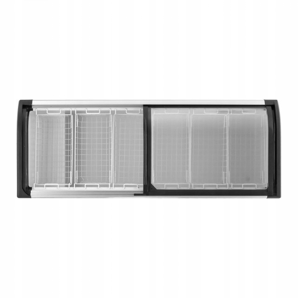- - Sześć koszy i przeszklone przesuwne drzwi nadają przejrzystości i porządku,