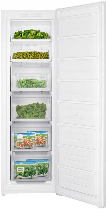 Sterowanie elektroniczne umożliwia precyzyjne ustawienie temperatury i łatwe zarządzanie funkcjami zamrażarki za pomocą intuicyjnego panelu. Dzięki temu użytkownik ma pełną kontrolę nad warunkami przechowywania żywności