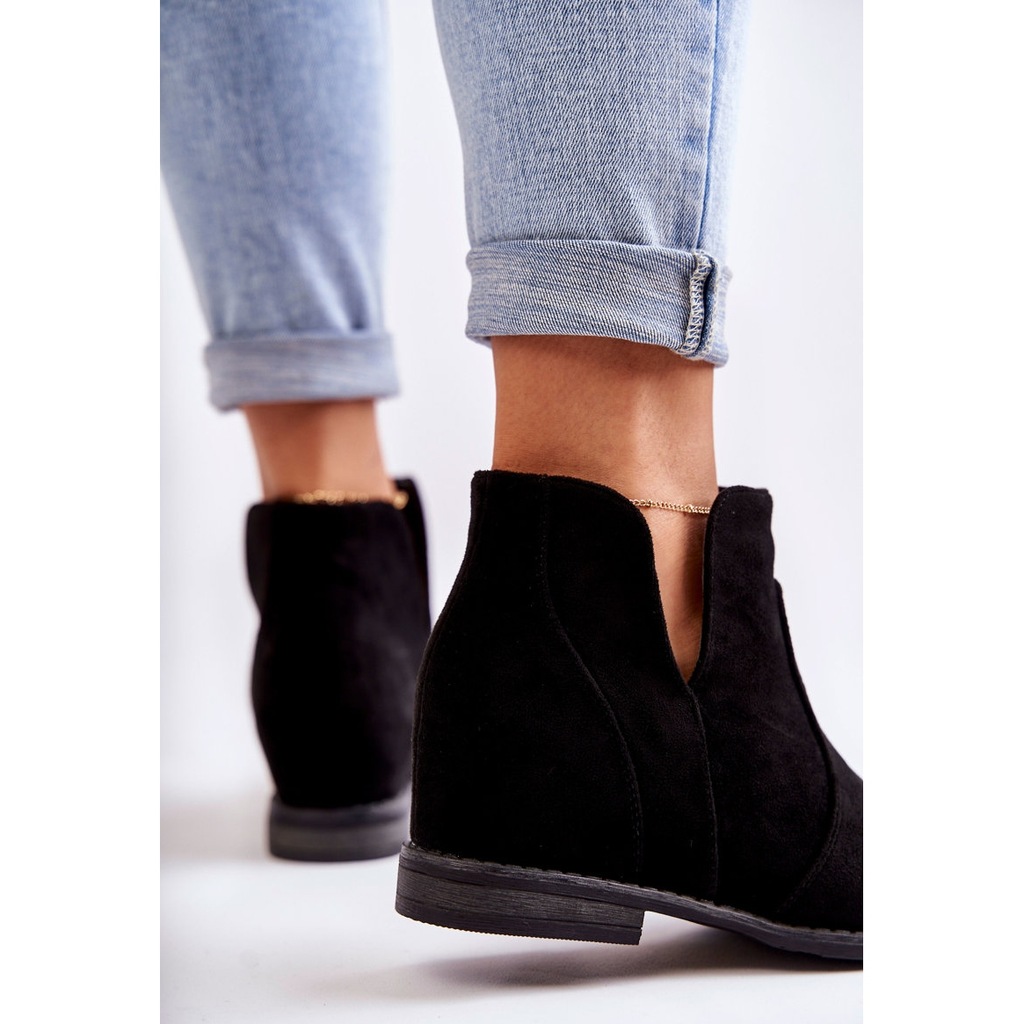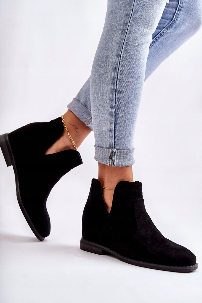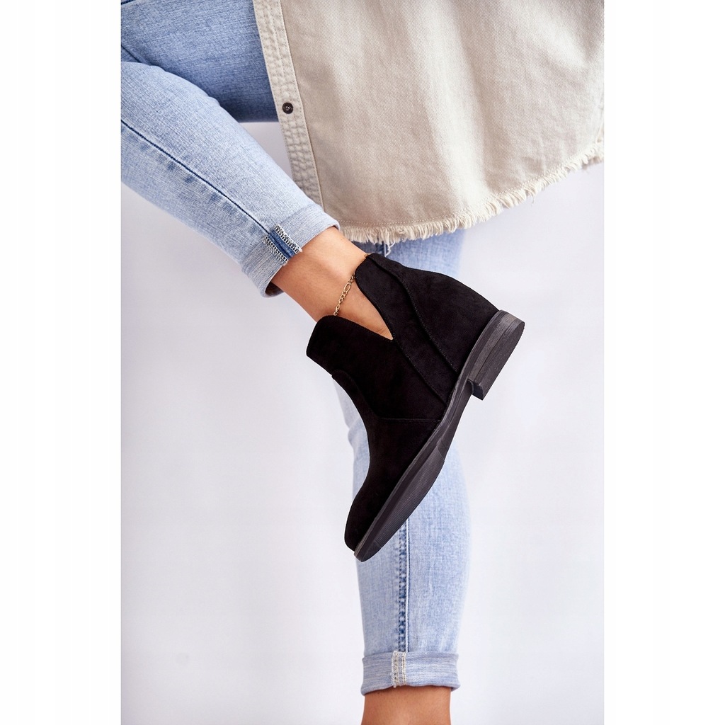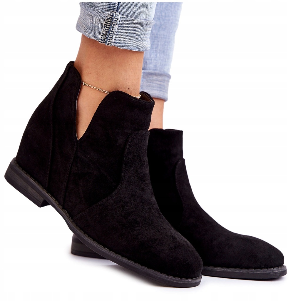 Zamszowe Botki Z Wycięciami Na Płaskim Obcasie Czarne Henriette - rozmiar 36
