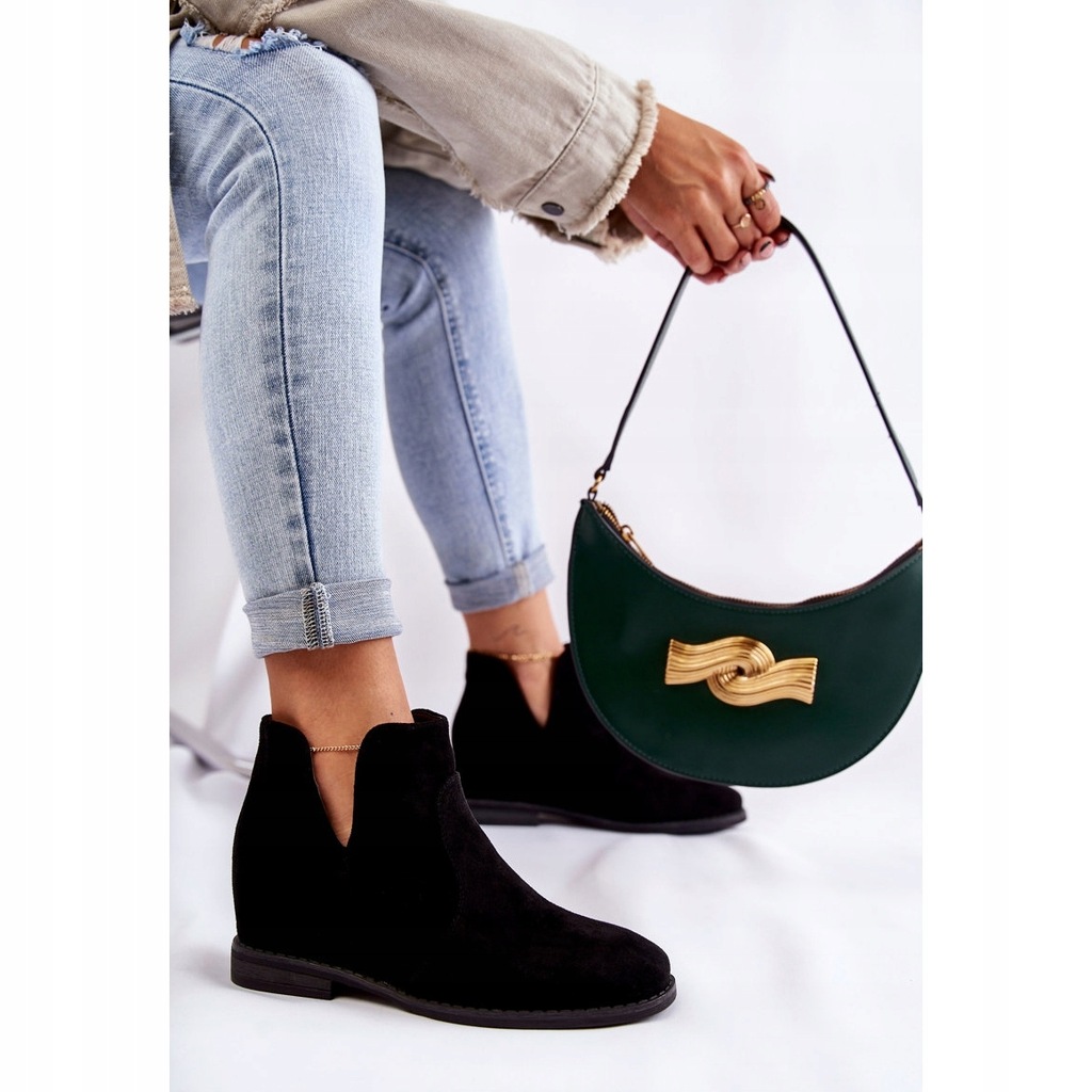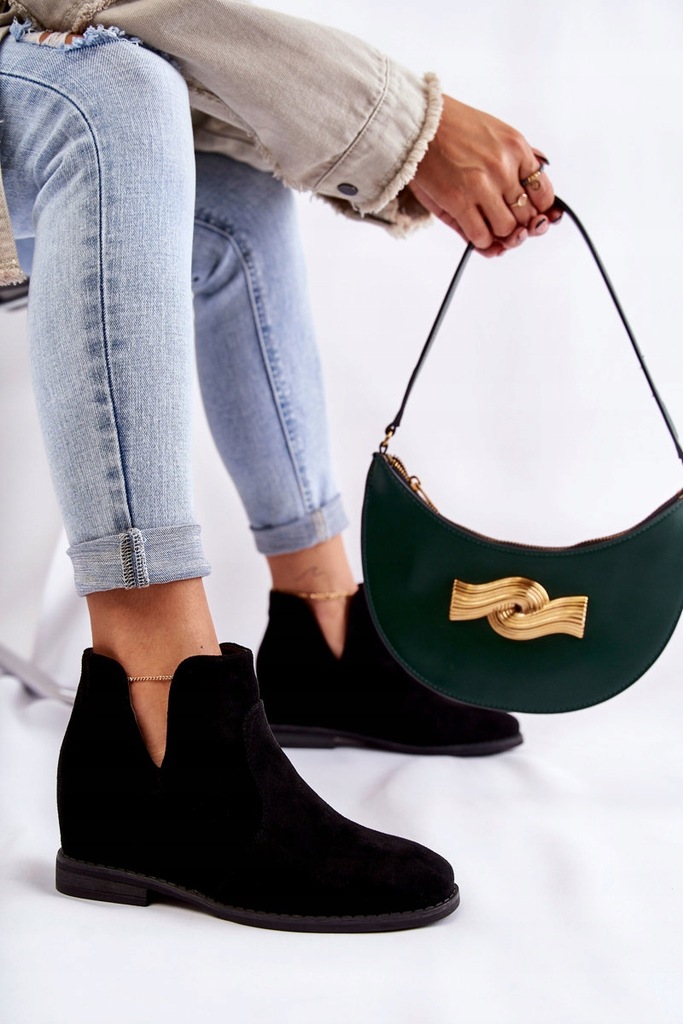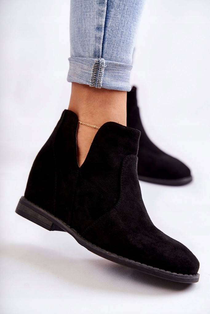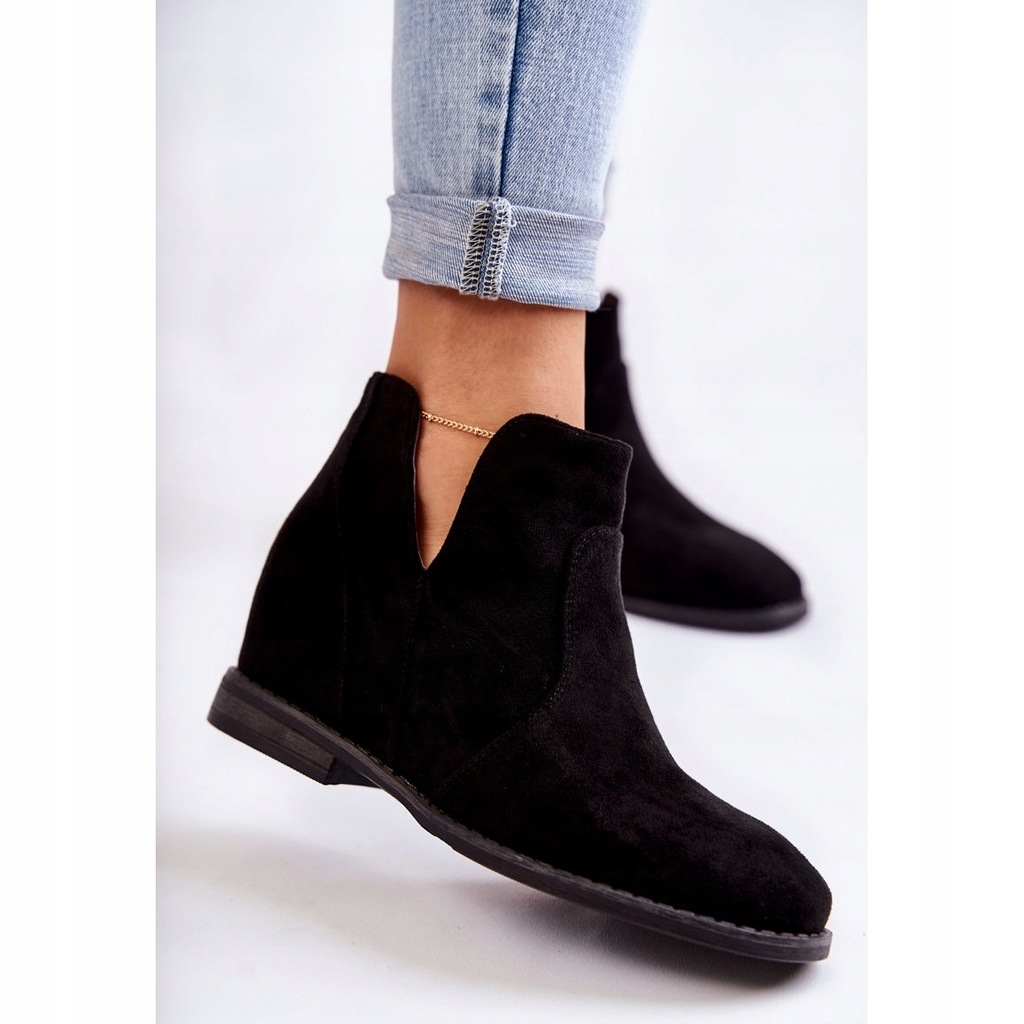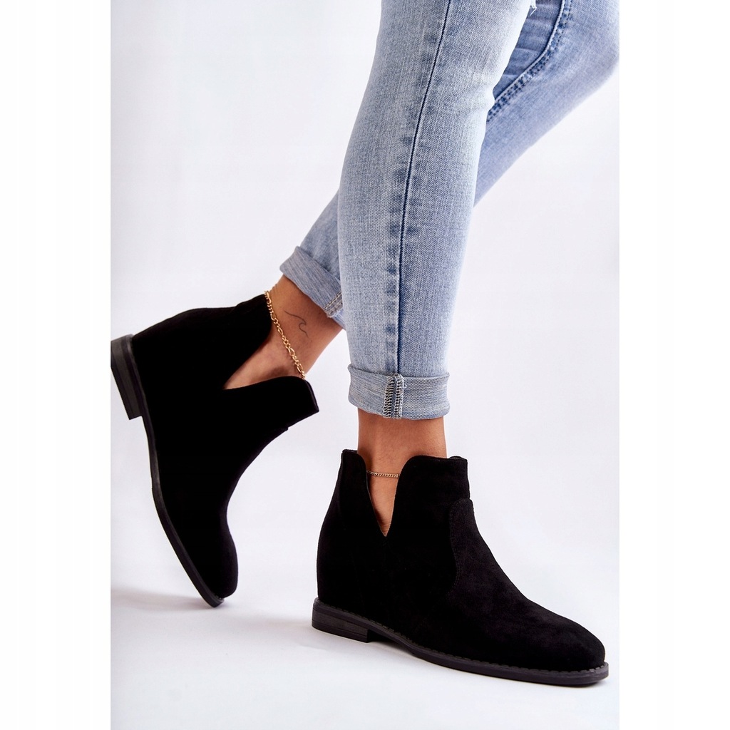 Zamszowe Botki Z Wycięciami Na Płaskim Obcasie Czarne Henriette - rozmiar 36