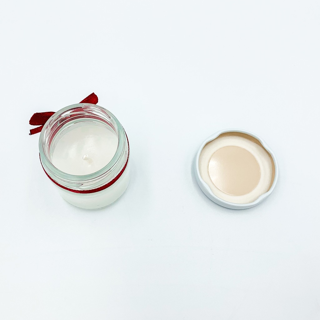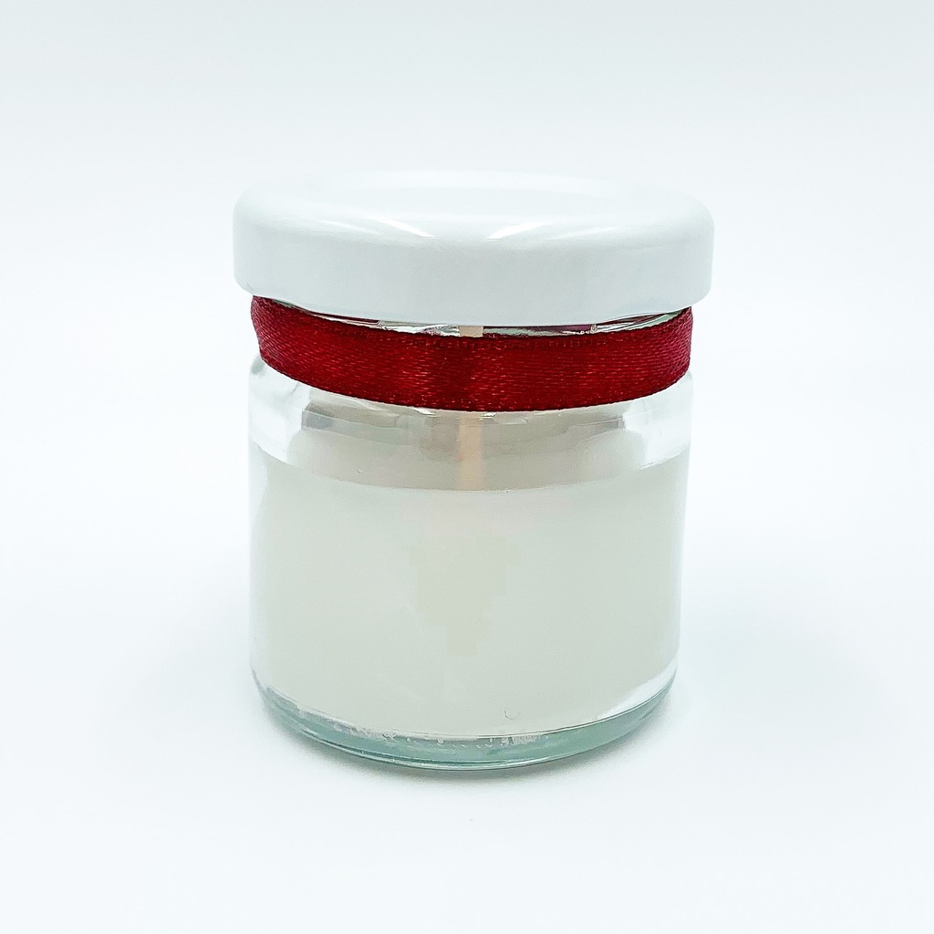 Wosk w słoiczku sięga na wysokość ok. 2/3 słoika. Czas palenia się świeczki to około 1h. Słoiczek przewiązany wstążeczką w odcieniach bordo.