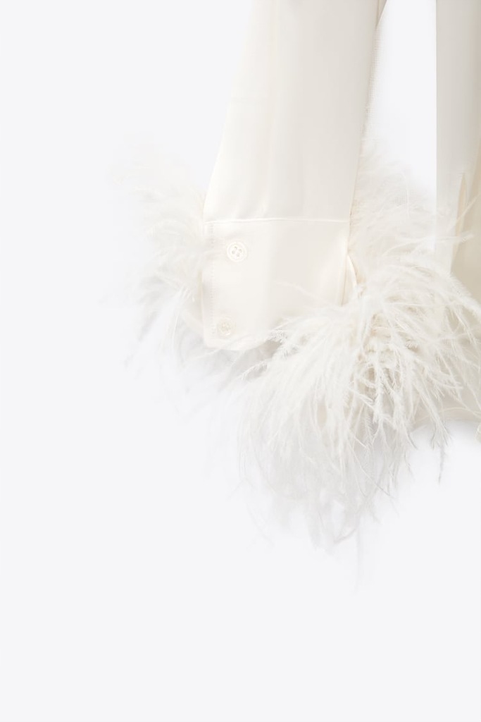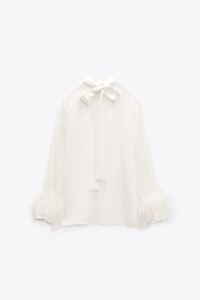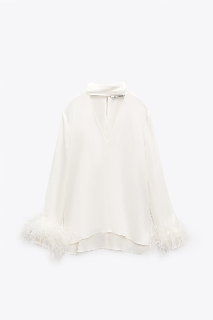 ZARA BLUZKA Z TKANINY SATYNOWANEJ Z PIÓRAMI