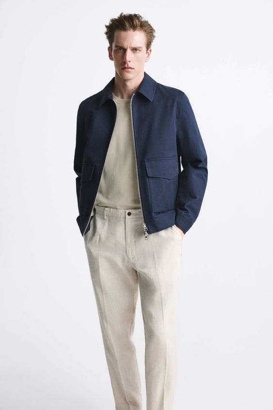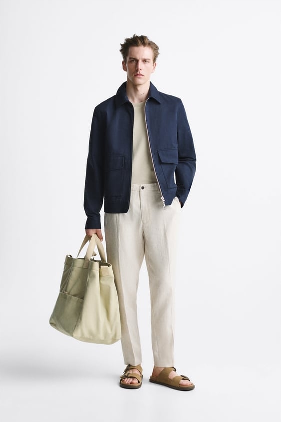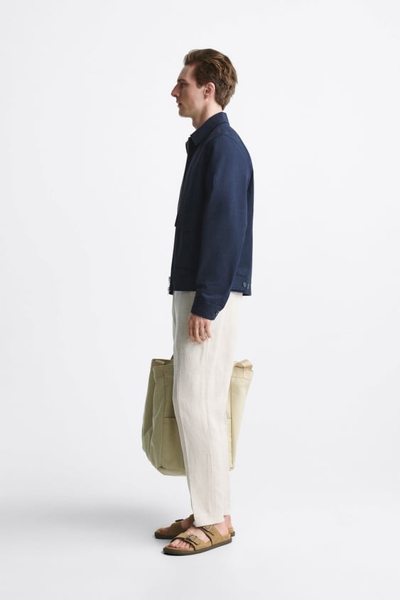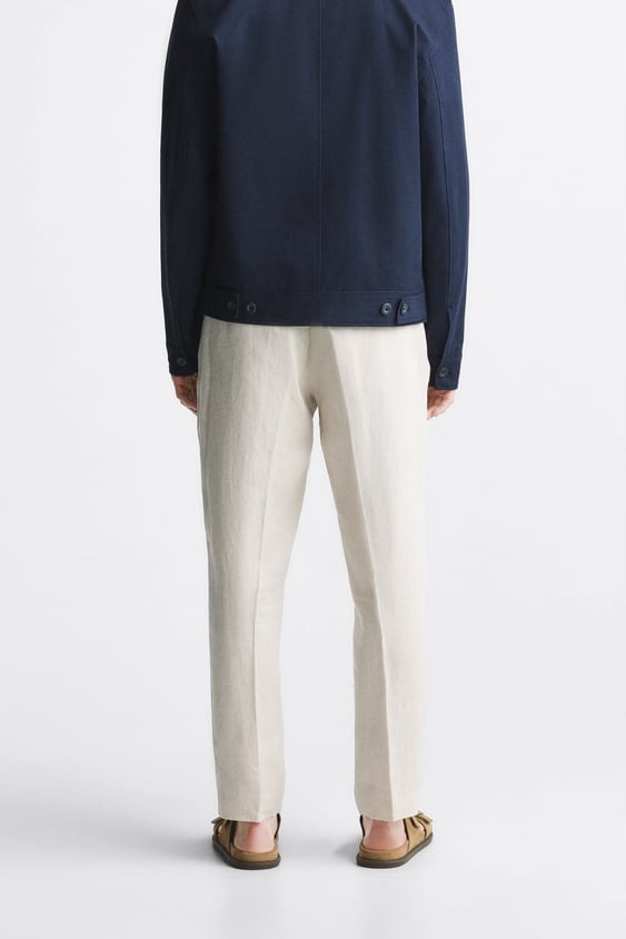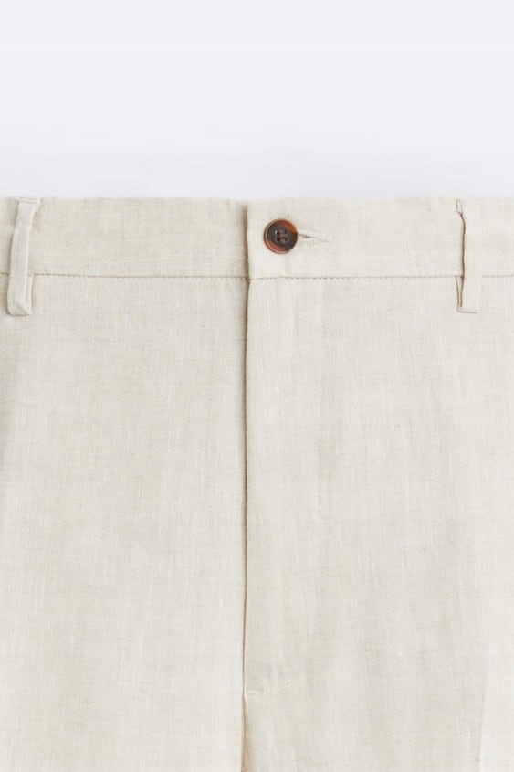 Lekkie, przewiewne spodnie męskie o swobodnym kroju, uszyte z tkaniny lnianej.