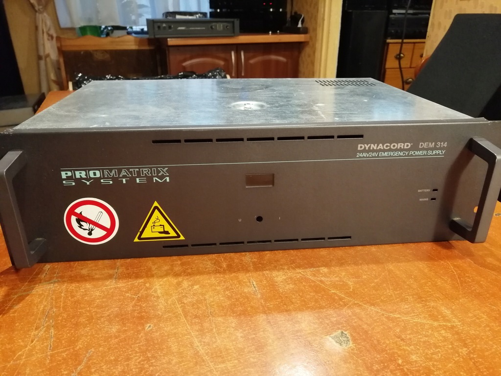Stan techniczny po włączeniu do prądu przekaźnik się po chwili załącza. Zasilacz cicho buczy. Z powodu braku w środku akumulatorów reszta nie sprawdzana. W komplecie z Niemiec razem z nim przyszły jeszcze 3 wzmacniacze mocy "DYNACORD DPA-4140 400 WATT" oraz "DYNACORD DPM4000 4x4 MATRIX MANAGER". Dostępne na innych aukcjach. Wszystkie sprzęty współpracują w jednym systemie "PRO MATRIX SYSTEM". Istnieje możliwość zakupu wszystkich podzespołów razem po dogadaniu ceny za całość i ceny wysyłki.