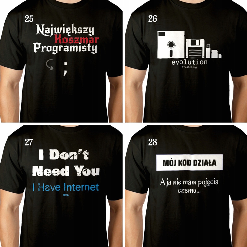 - Każda koszulka pakowana jest w ochronny worek foliowy