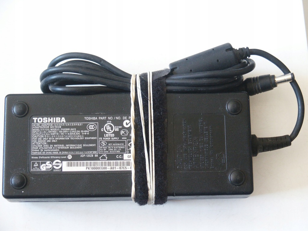 oryginalny zasilacz do laptopów Toshiba 19V 6,32A 120W. Średnica wtyku: 5,5mm x 2,5mm. Zasilacz jest sprawny.