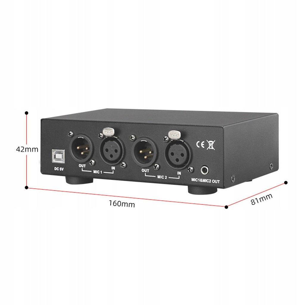 4. Obsługa podwójnych mikrofonów: zasilanie Phantom to zbalansowany zasilacz z 2 grupami, zbalansowanymi sygnałami wejściowymi i wyjściowymi, obsługujący podwójne mikrofony do jednoczesnego użytkowania i tłumiący typowe zakłócenia dotykowe.