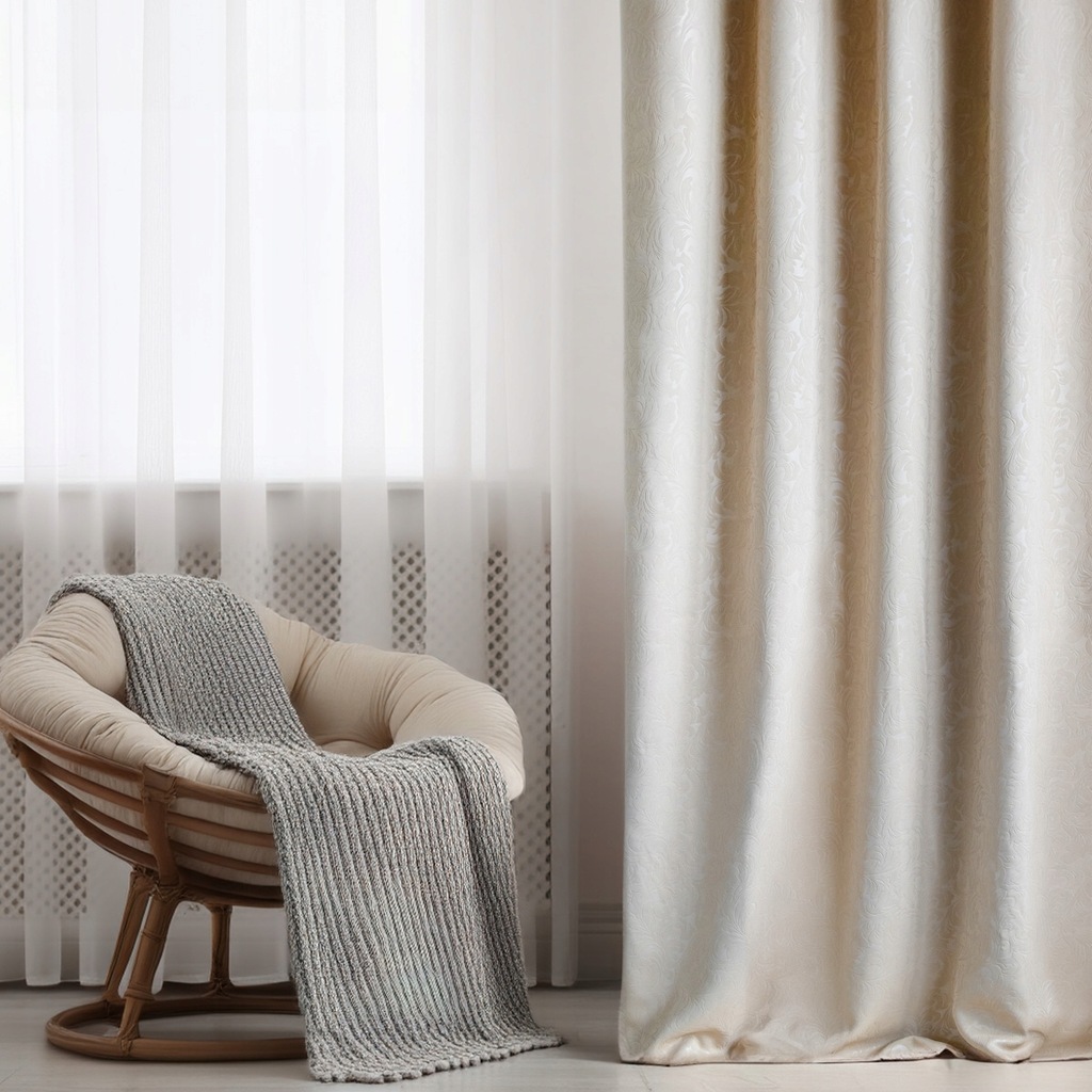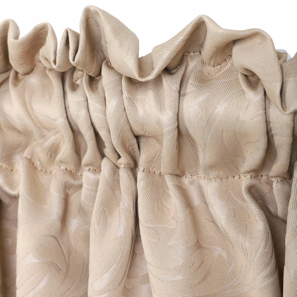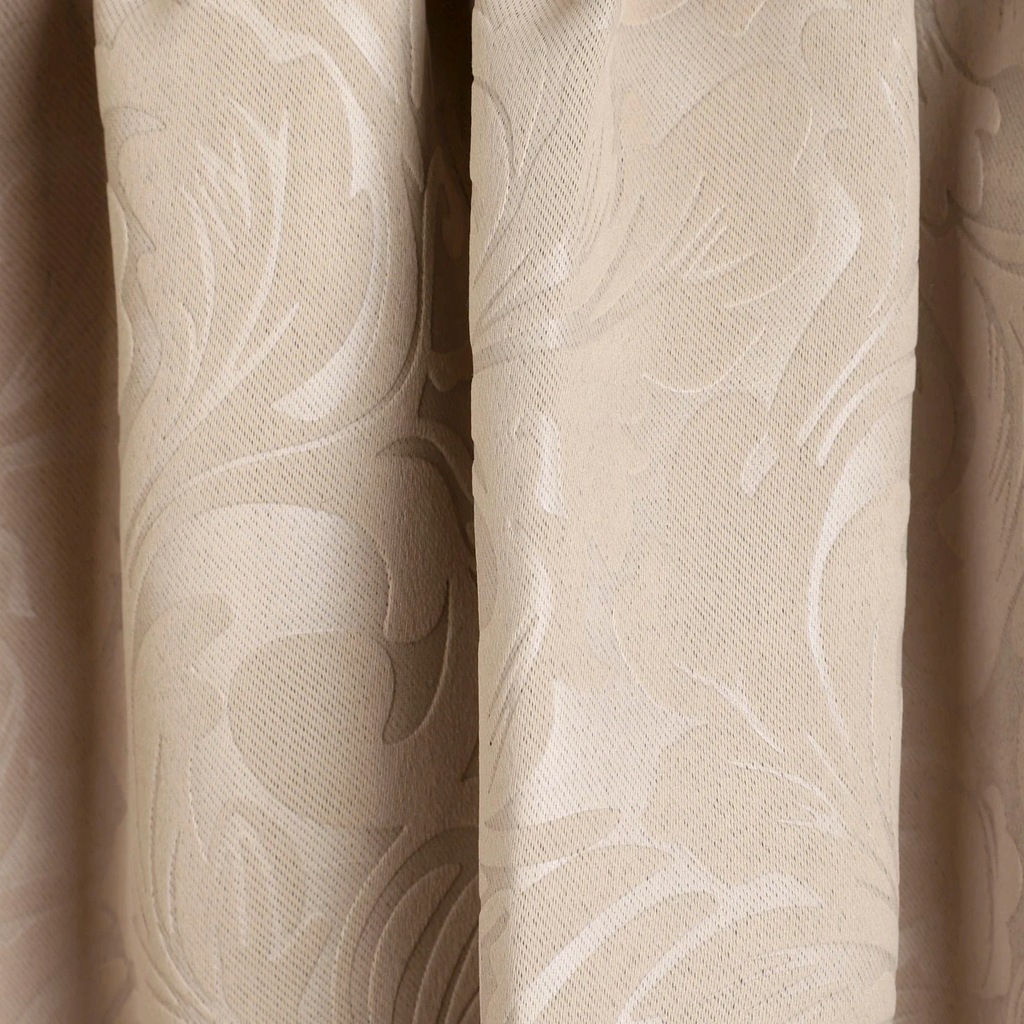 Elegancka beżowa zasłona z wytłaczanym wzorem