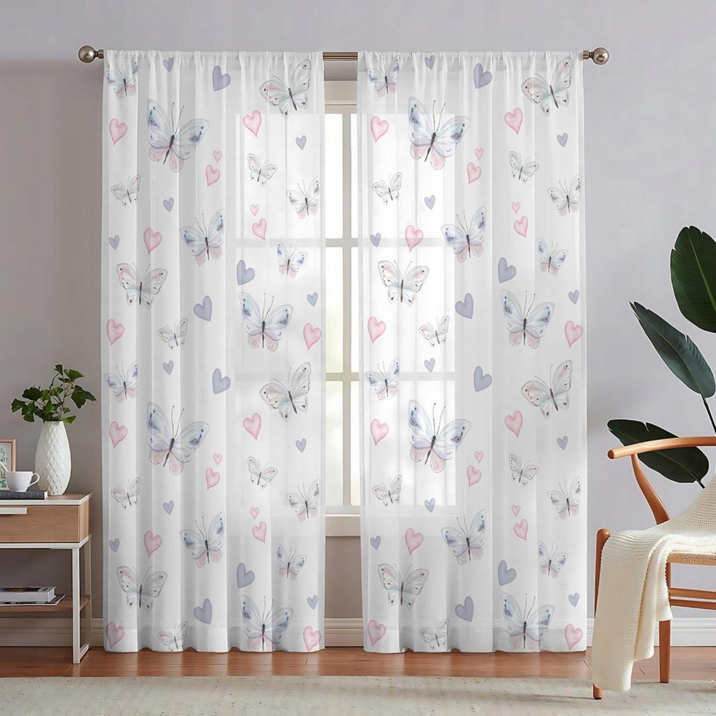 [Druk cyfrowy]Zasłony z wzorem motyla wykonanym w procesie drukowania, jasne kolory, wyraźne wzory, wysoka trwałość kolorów, świetny prezent dla twojej uroczej rodziny