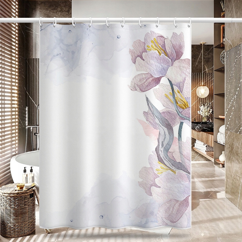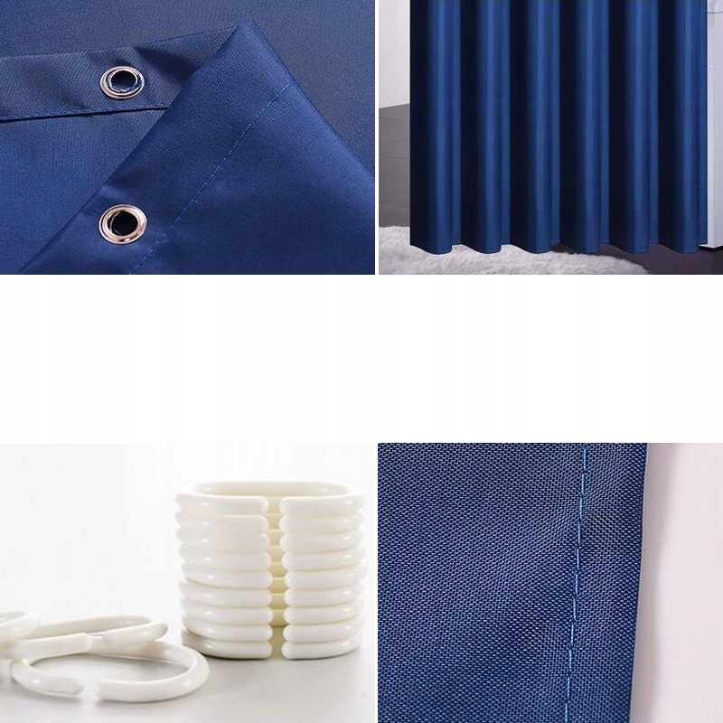Pakiet zawiera: 1 szt. zasłony prysznicowej, z białym haczykiem