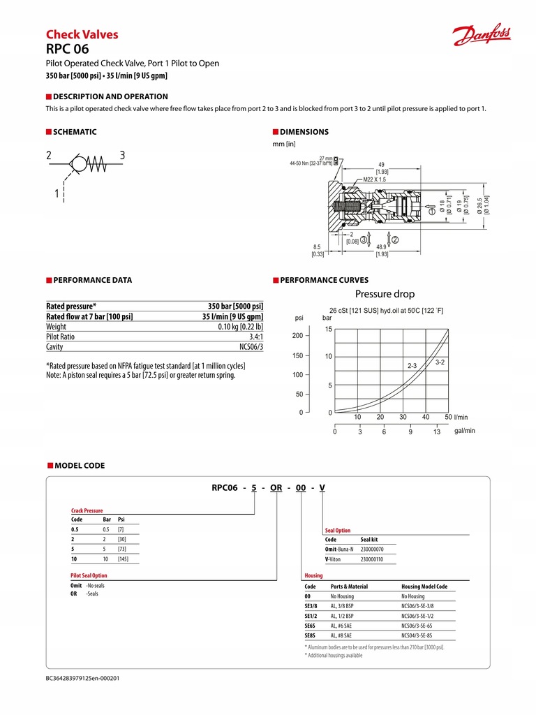 Zawór zwrotny sterowany RPC 06-5-OR-00 P/N:11169110