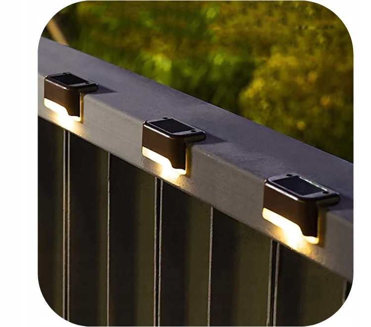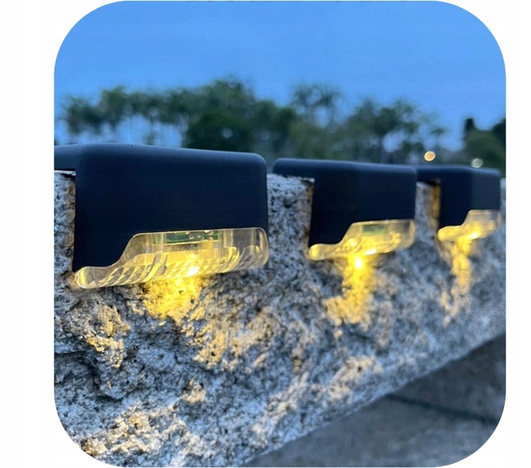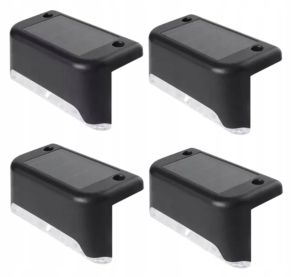 Zestaw 4 lamp schodowych zasilanych za pomocą wbudowanego panelu solarnego. Każda z lampek posiada wbudowany akumulator doładowywany za pomocą światła słonecznego, nie wymagają dodatkowego zasilania. Wyposażone w jasne diody LED o barwie zimnej białej. Lampki posiadają czujniki zmierzchu, które automatycznie uruchamiają diody LED po zapadnięciu zmierzchu. Bardzo łatwa instalacja - dołączone elementy montażowe.