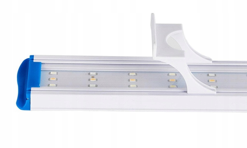 Belka oświetleniowa do akwarium. Wyposażona w aż 27 energooszczędnych diod LED o barwie naturalnej białej oraz 9 diod niebieskich (barwa 10000K). Przeznaczona do akwariów o szerokości do 45 cm (regulowane uchwyty). Zasilana z sieci elektrycznej 230V co zapewnia dużą wydajność światła i czyni lampkę bezobsługową. Barwa światła 7000 zapewnia doskonałe odwzorowanie kolorów wewnątrz akwarium.