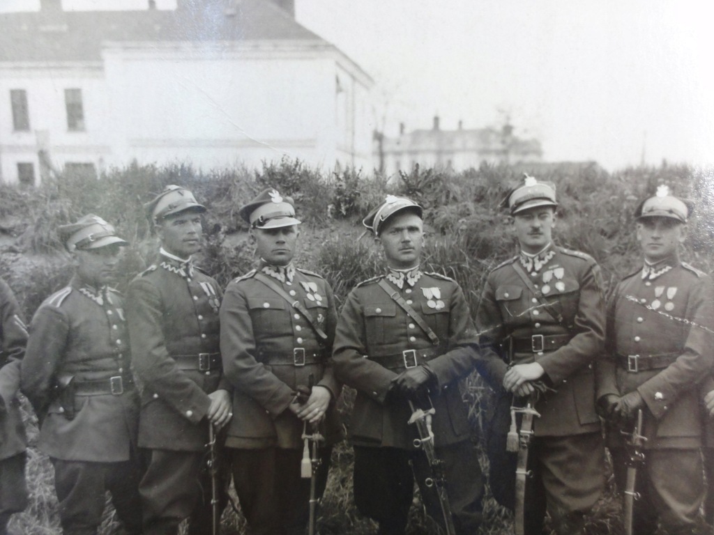 Przedmiotem dzisiejszej aukcji jest zdjęcie grupowe przedstawiające ułanów z 8 Pułku Ułanów z szablami i odznaczeniami. Zdjęcie jest całe, w dobrym stanie, dobrze widoczne umundurowanie, format pocztówkowy, papier sygnowany, z tyłu widoczna pieczątka zakładu fotograficznego z Bochni. Polecam do kolekcji- ogromny unikat. Nie wysyłam za granicę.