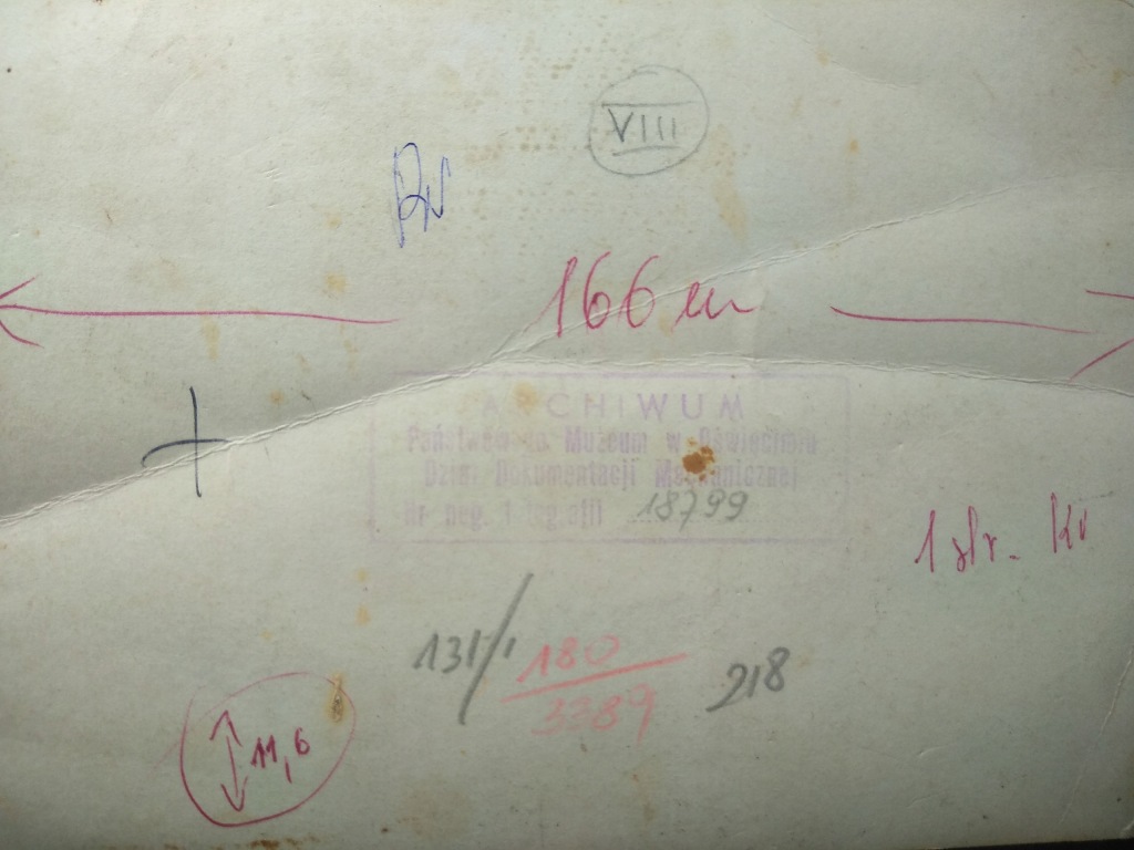 na odwrocie pieczątka archiwum Muzeum Oświęcimskiego, 14,5 x 11 cm, zabrudzenia i zmarszczki