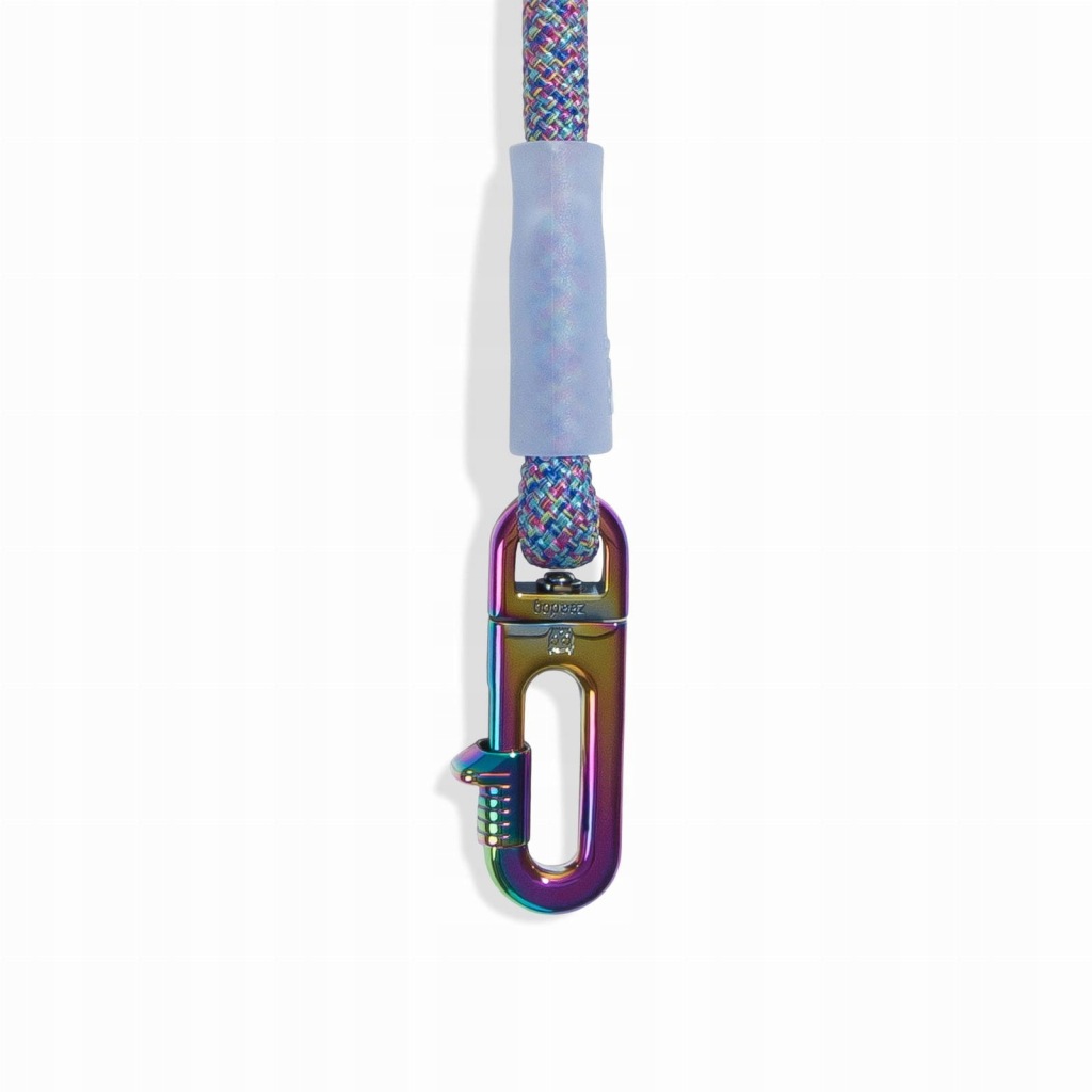 Unikalny karabińczyk pozwala na bezproblemowe podpięcie smyczy do szelek lub obroży.