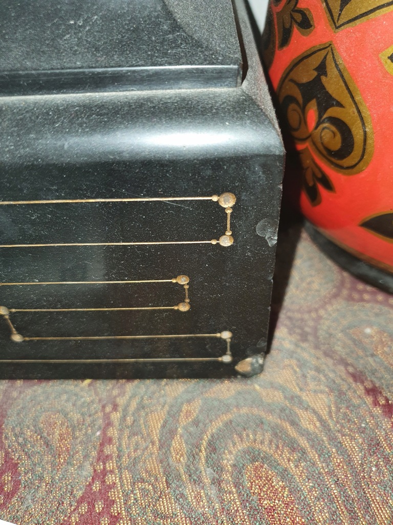 Oferuje do sprzedaży zegar w kamiennej obudowie z tzw. wychwytem Brocota.Zegar jest w dobrym stanie jedynie w prawym dolnym narożniku ma uszkodzony fragment. Odprysk około 1 cm.