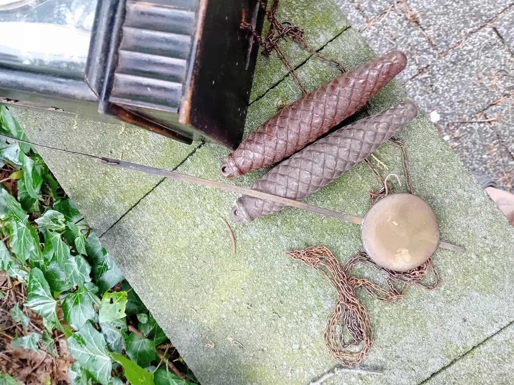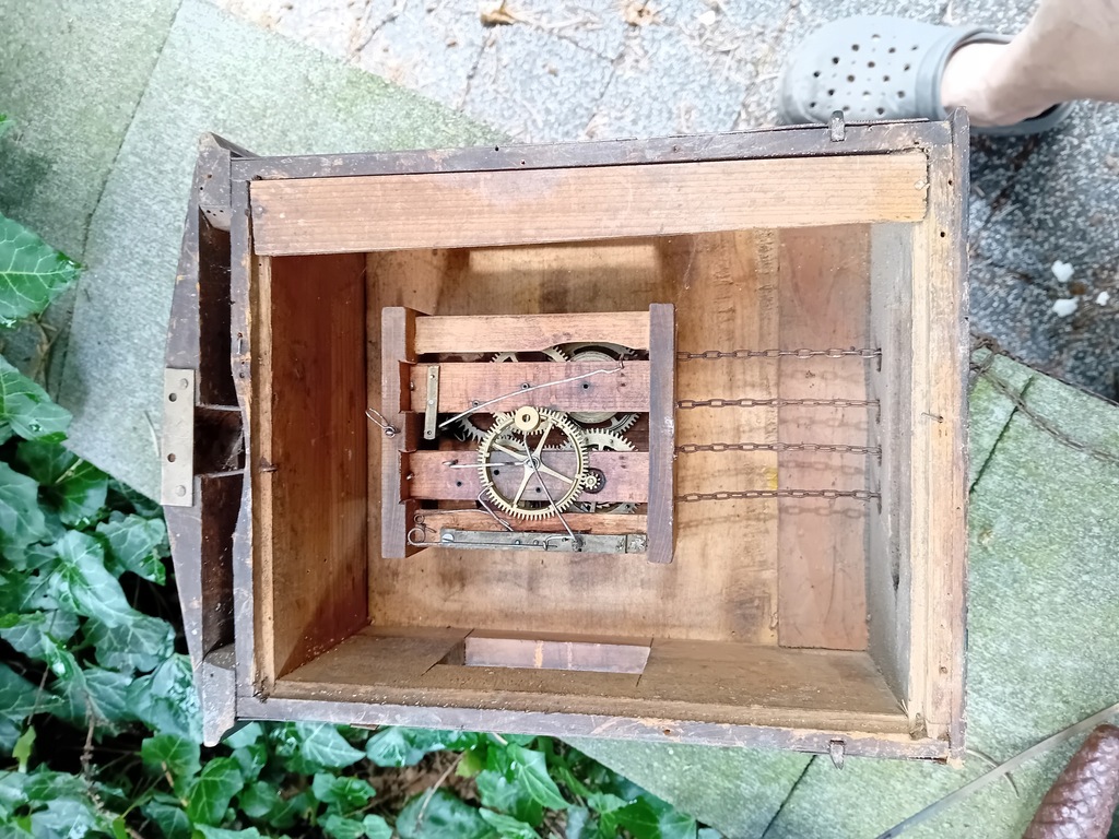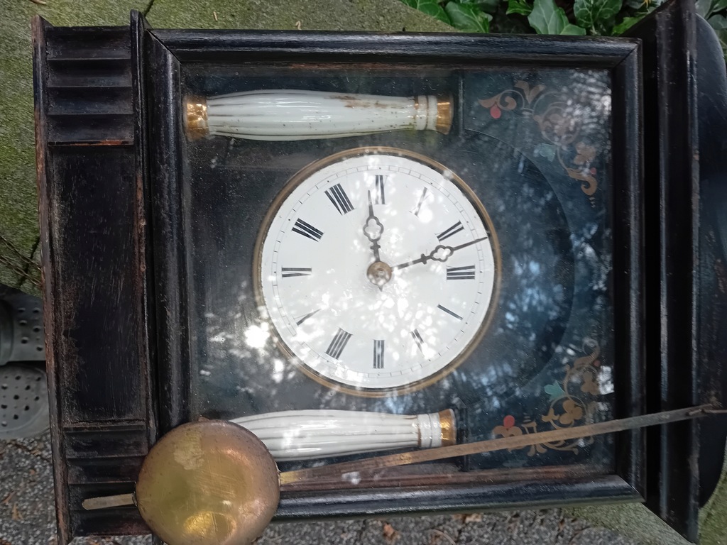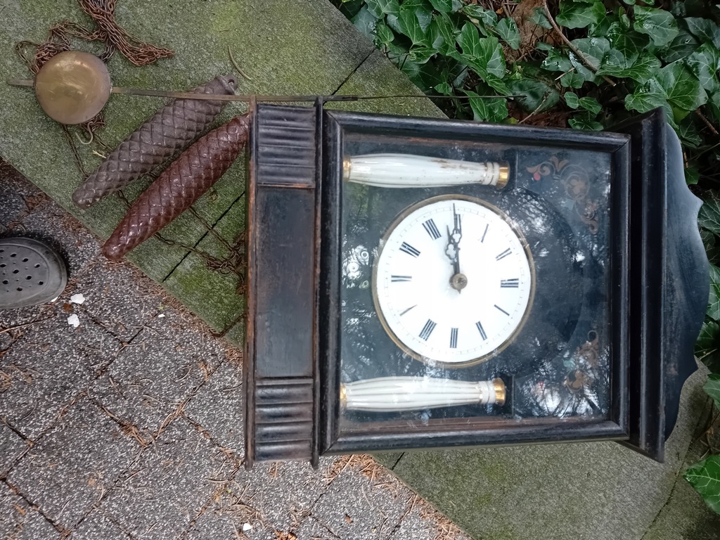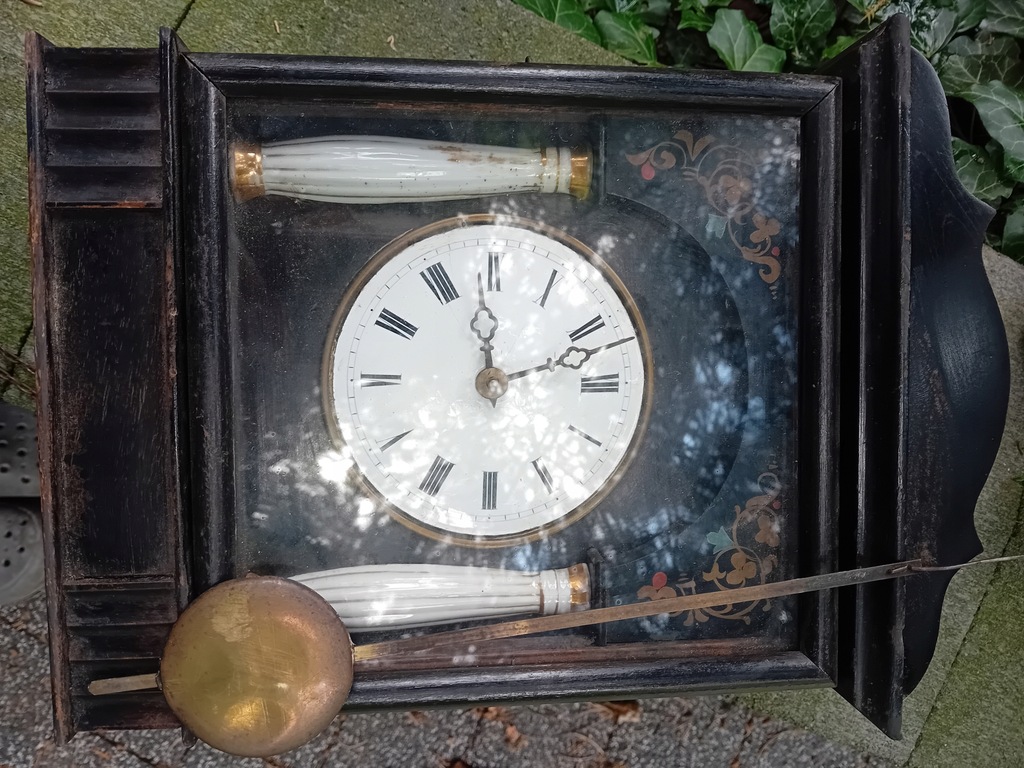 STARY ORYGINALNY ZEGAR LUDOWY SZWARCWALDZKI z okresu lat międzywojennych z porcelanowymi kolumienkami. Mechanizm sprawny.Tarcza porcelanowa w stanie idealnym.Brak jedynie tylnej pokrywy skrzynki z gongiem.; ewentualne pytania lub propozycje proszę na maila lub na telefon.Uwaga, na zdjęciach które wykonałem , na szybce skrzynki odbijają się liście i promienie słoneczne....