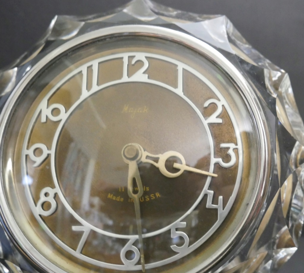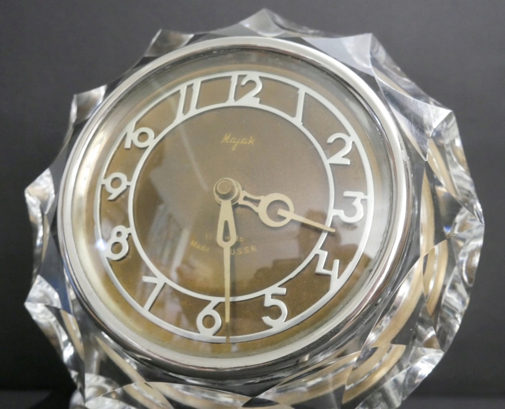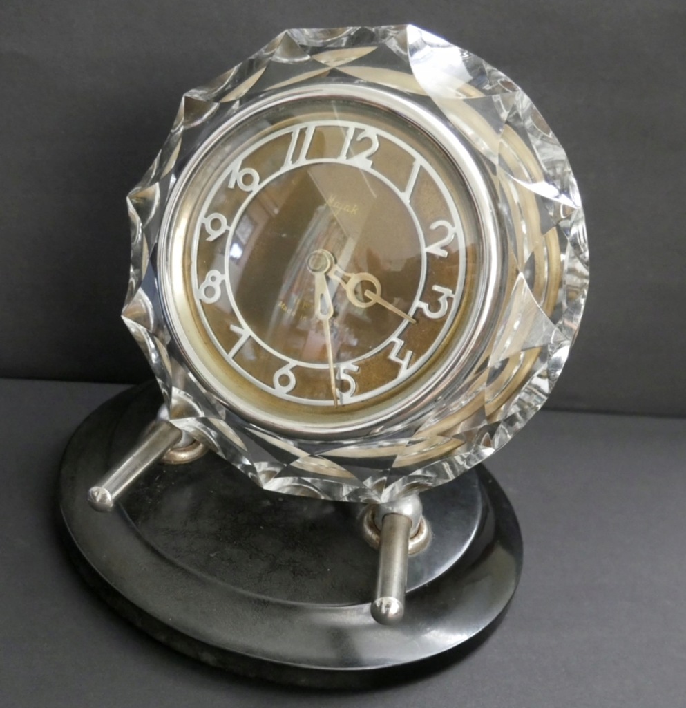 zegar, USSR, Radziecki, w grubej oprawie szklanej,sprawny,oryginalne części, śrubki,