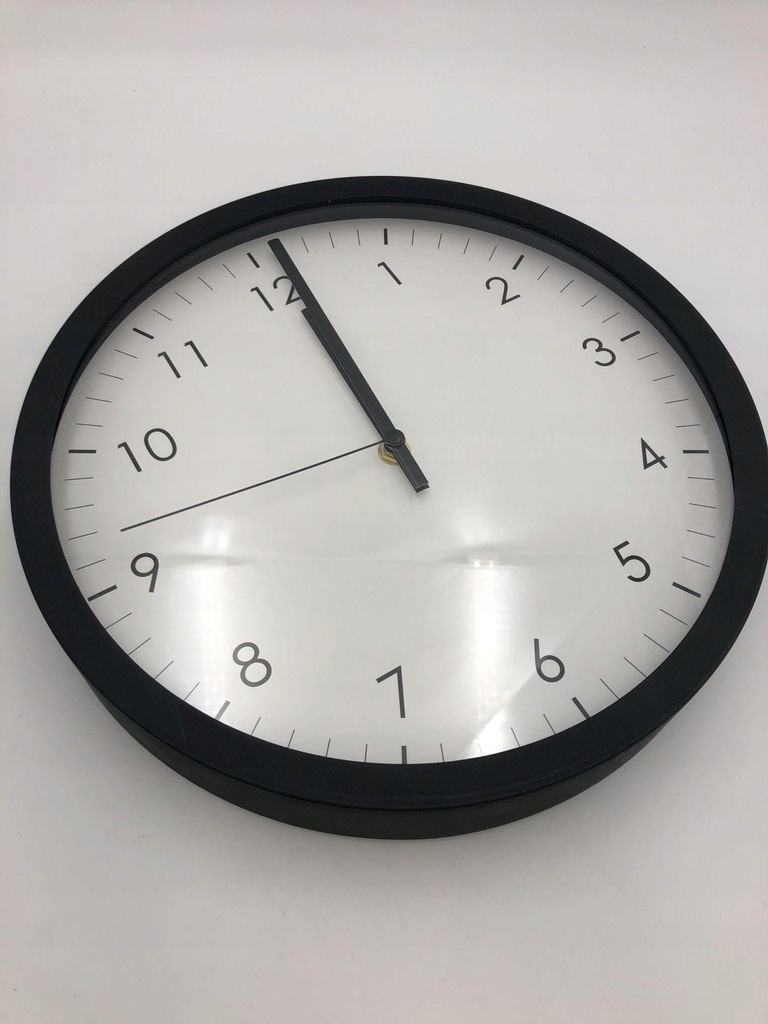 12-calowy zegar ścienny z obsługą analogową, wskazówkami godzinową i minutową